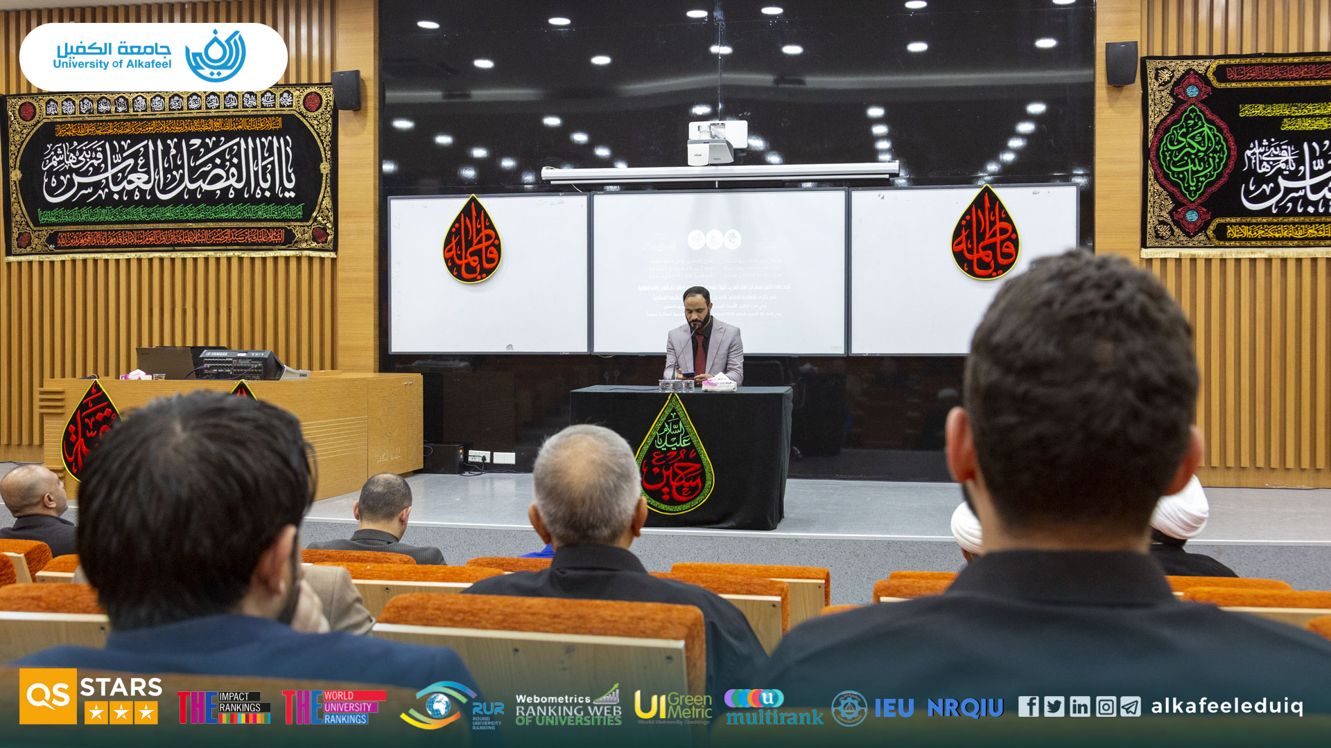 اقامت جامعة الكفيل مجلسًا عزائيًا في ذكرى شهادة الإمام السجاد زين العابدين (عليه السلام) في مبنى كليّة طِب الأسنان صباح اليوم الأحد 25من محرم الحرام الموافق 2023/8/13، بحضور السيد رئيس الجامعة الأستاذ الدكتور نورس محمد شهيد الدهان، والمساعد العلمي الأستاذ المساعد الدكتور نوال عائد الميالي والسّادة عمداء الكليات ورؤساء الأقسام ومنتسبي الجامعة، أستُهل المجلس الحسيني بآيٍ من الذكر الحكيم تلاها القارئ السيد ذوالفقار السعبري، أرتقى المنبر سماحة الشيخ حافظ الدجيلي، حيث تطرق خلال المحاضرة سيرة حياة الإمام السجاد (عليه السلام) ودوره في واقعة الطف، كما تناولت في نهضته (عليه السلام) بواقع الإسلام والمسلمين بعد إستشهاد أبيه (عليه السلام) من خلال التأسيس لمدرسة الصادقين الباقر والصادق (عليهما السلام) فقد كان نشاطه عظيمًا وهائلا في تحقيق أهداف الدين الحنيف، ومواجهته الإنحرافات الأخلاقية والإجتماعية، فضلا عن ومواجهته (عليه السلام) المشروع الأموي الذي يهدد وجود الإسلام المقدس.