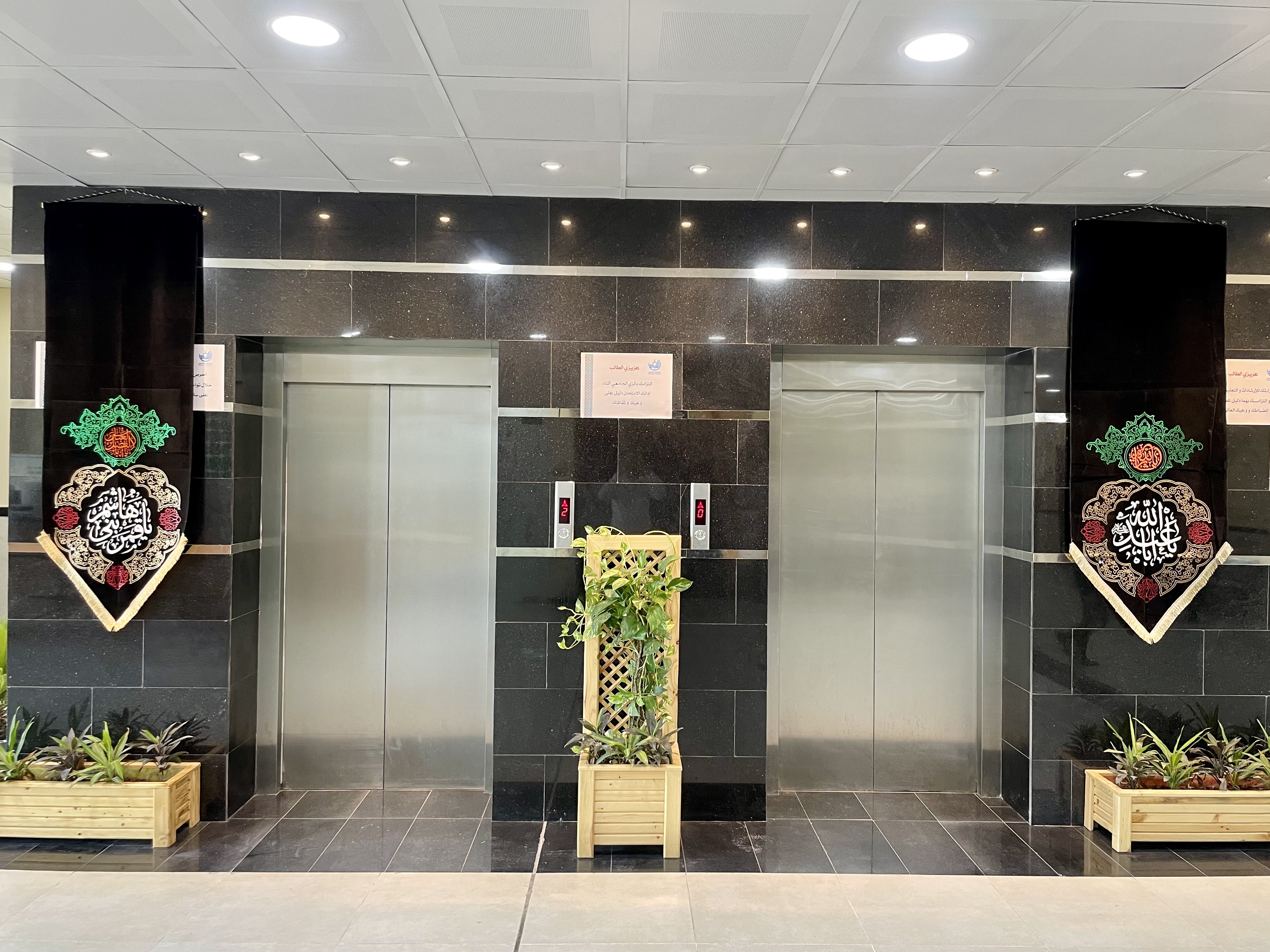 بمناسبة ذكرى عاشوراء الأمام الحسين (عليه السلام) وانتصار الدم على السيف وبتوجيه مباشر من قبل رئاسة جامعة الكفيل التابعة الى هياة التربية والتعليم العالي في العتبة العباسية المقدسة قامت وحدة الصيانة بتوشيح مدخل الجامعة بلافتات الحزن والسواد تخليدا ًلذكرى تلك الدماء الطاهرة التي سقطت دفاعاً عن الحرية والكرامة والدين عندما أطلق الأمام الحسين (عليه السلام) صرخته المدوية ((أن كان دين محمد لم يستقم ألا بقتلي فيا سيوف خذيني )) فكان الإسلام محمدي الوجود حسيني البقاء .