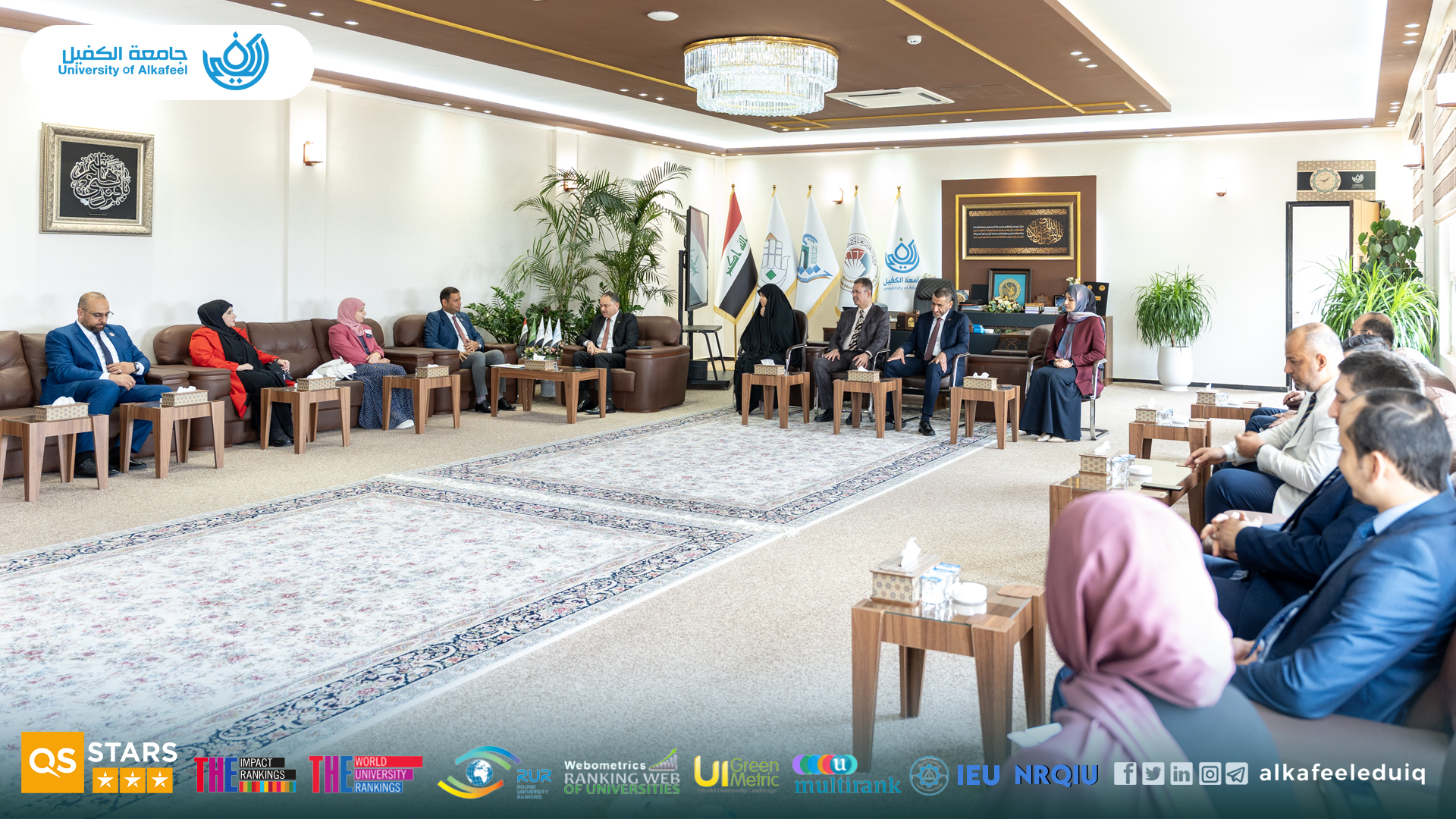استقبل الأستاذ الدكتور نورس محمد شهيد الدهان رئيس جامعة الكفيل يوم الثلاثاء الموافق 2025/4/22 لجنة وزارية من وزارة التعليم العالي والبحث العلمي بحضور مساعد رئيس الجامعة للشؤون العلمية الأستاذة الدكتورة نوال عائد الميالي والسادة عمداء الكليات والمعاونين.