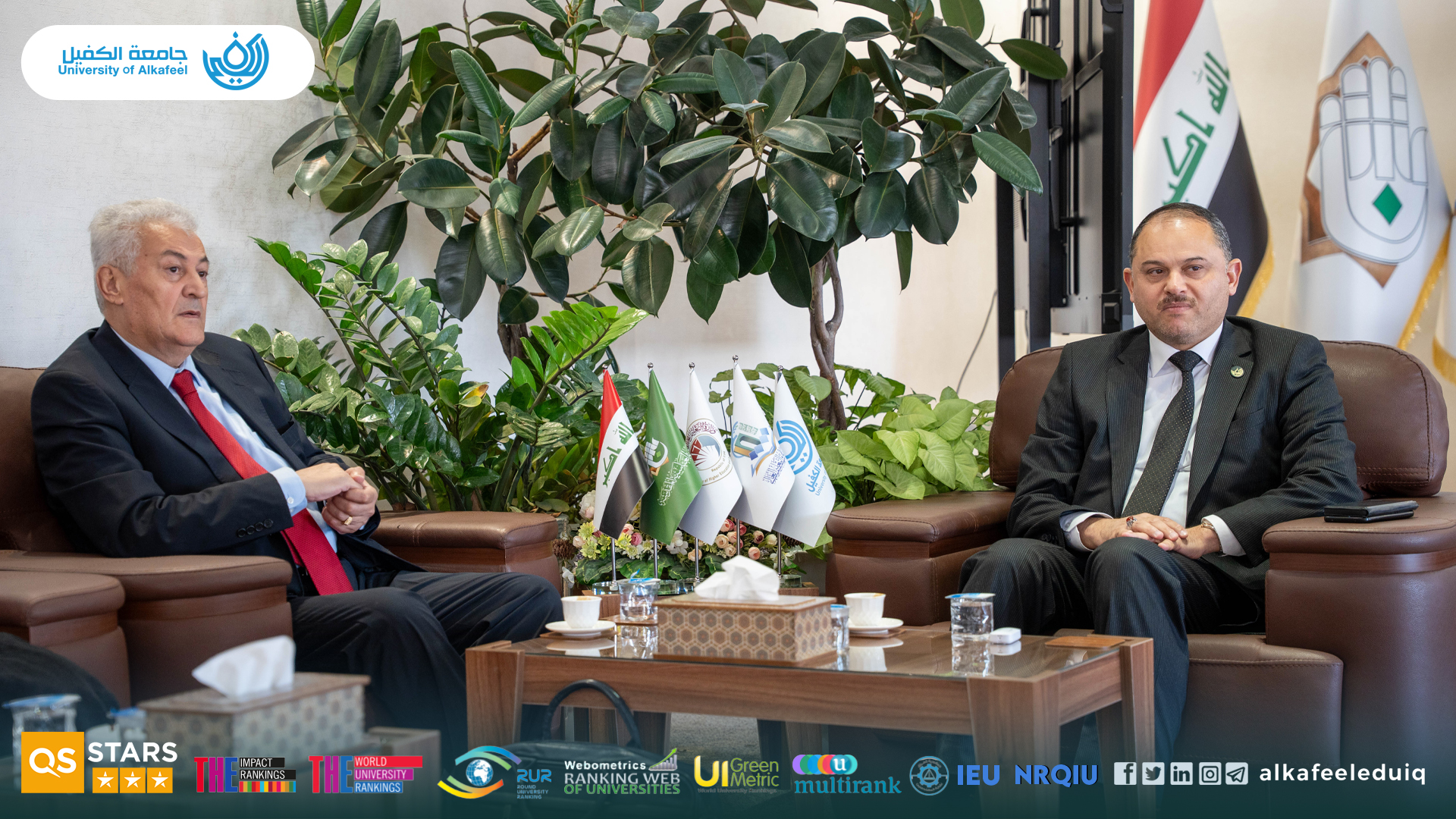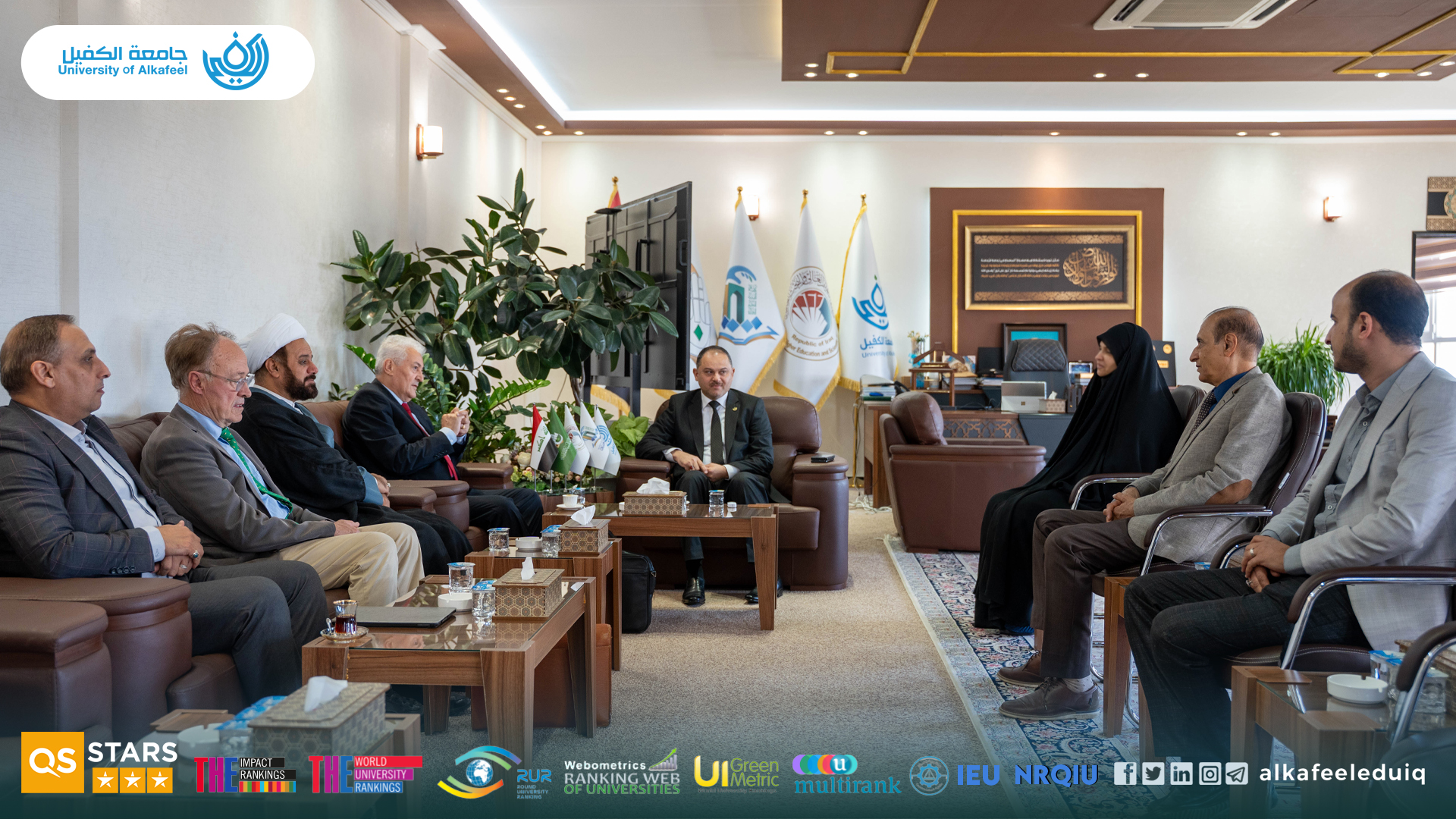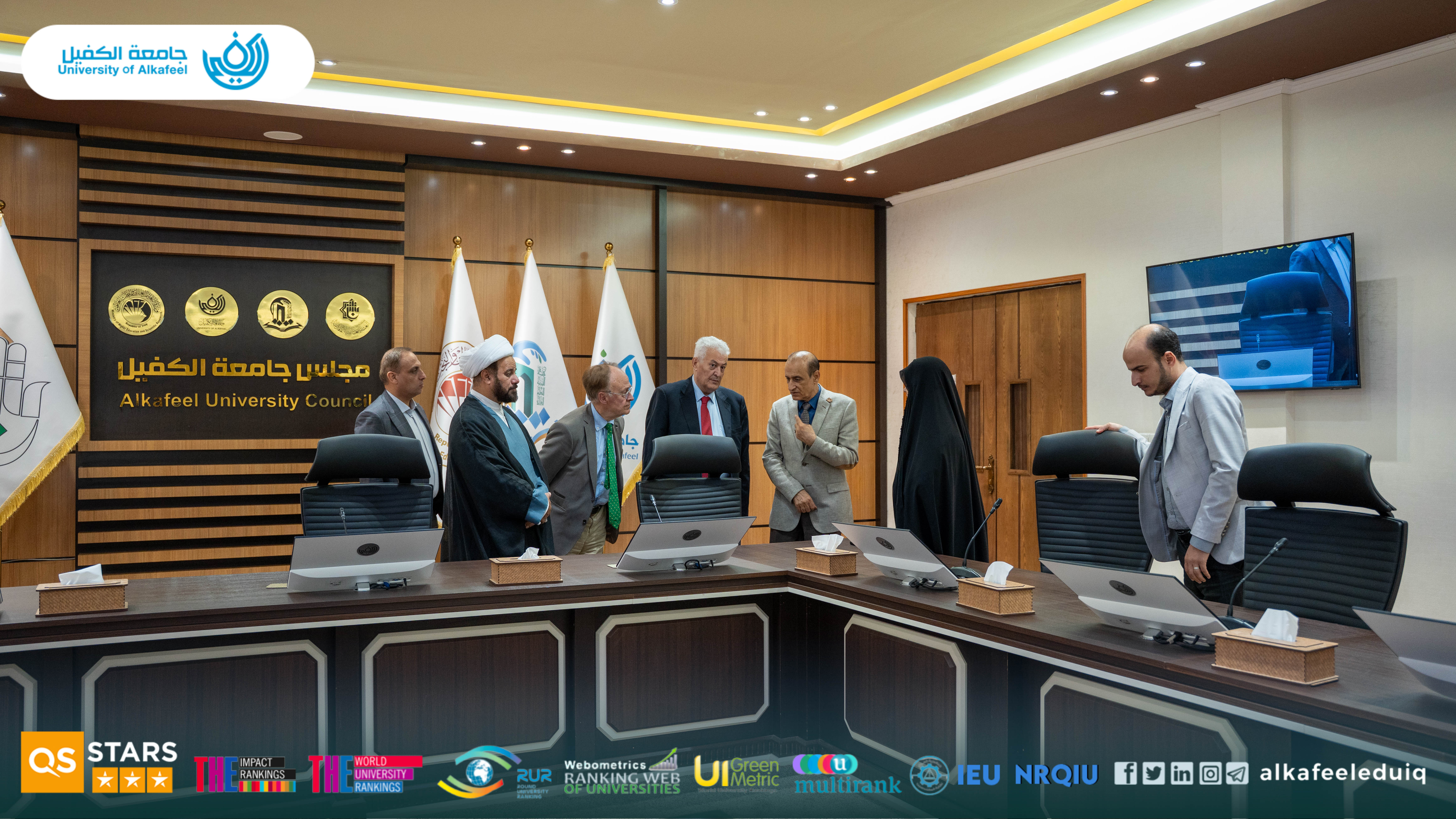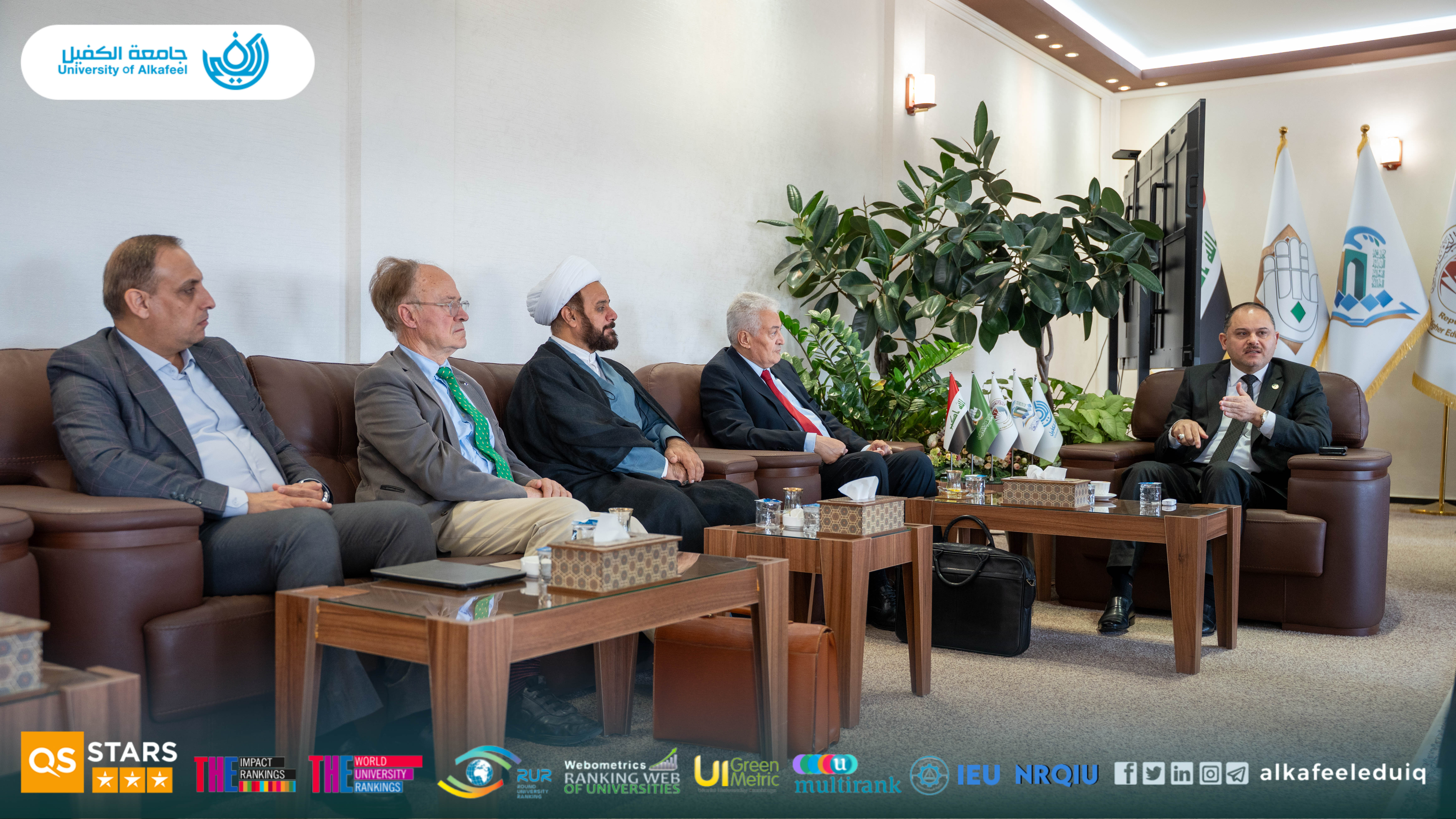 استقبل السيد رئيس جامعة الكفيل الأستاذ الدكتور نورس محمد شهيد الدهان يوم السبت الموافق 2025/10/4 وفدًا من Paris Academy of Geopolitics بحضور المساعد العلمي الأستاذ الدكتور نوال عائد الميالي وذلك في زيارة رسمية.