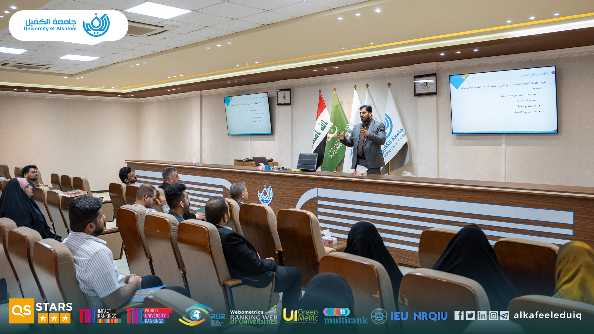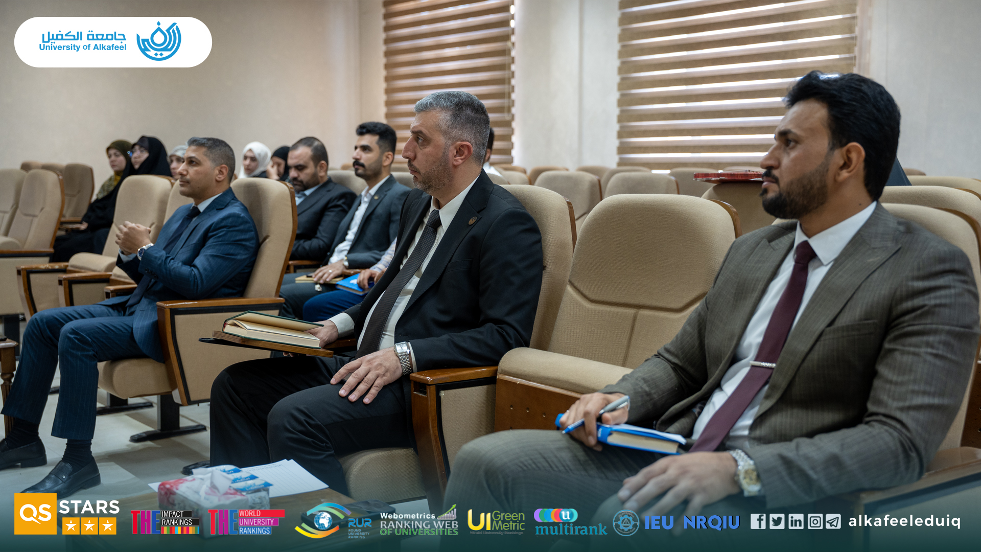 كما استعرض المحاضر مجموعة من النماذج والتطبيقات العملية التي أسهمت في إدراج جامعة الكفيل ضمن التصنيفات العالمية المرموقة إضافةً إلى توضيح آليات تقييم الأداء والفحص الذاتي وأهمية تطوير المهارات الفردية للحصول على أعلى درجات التقييم السنوي ضمن معايير الجودة الشاملة.