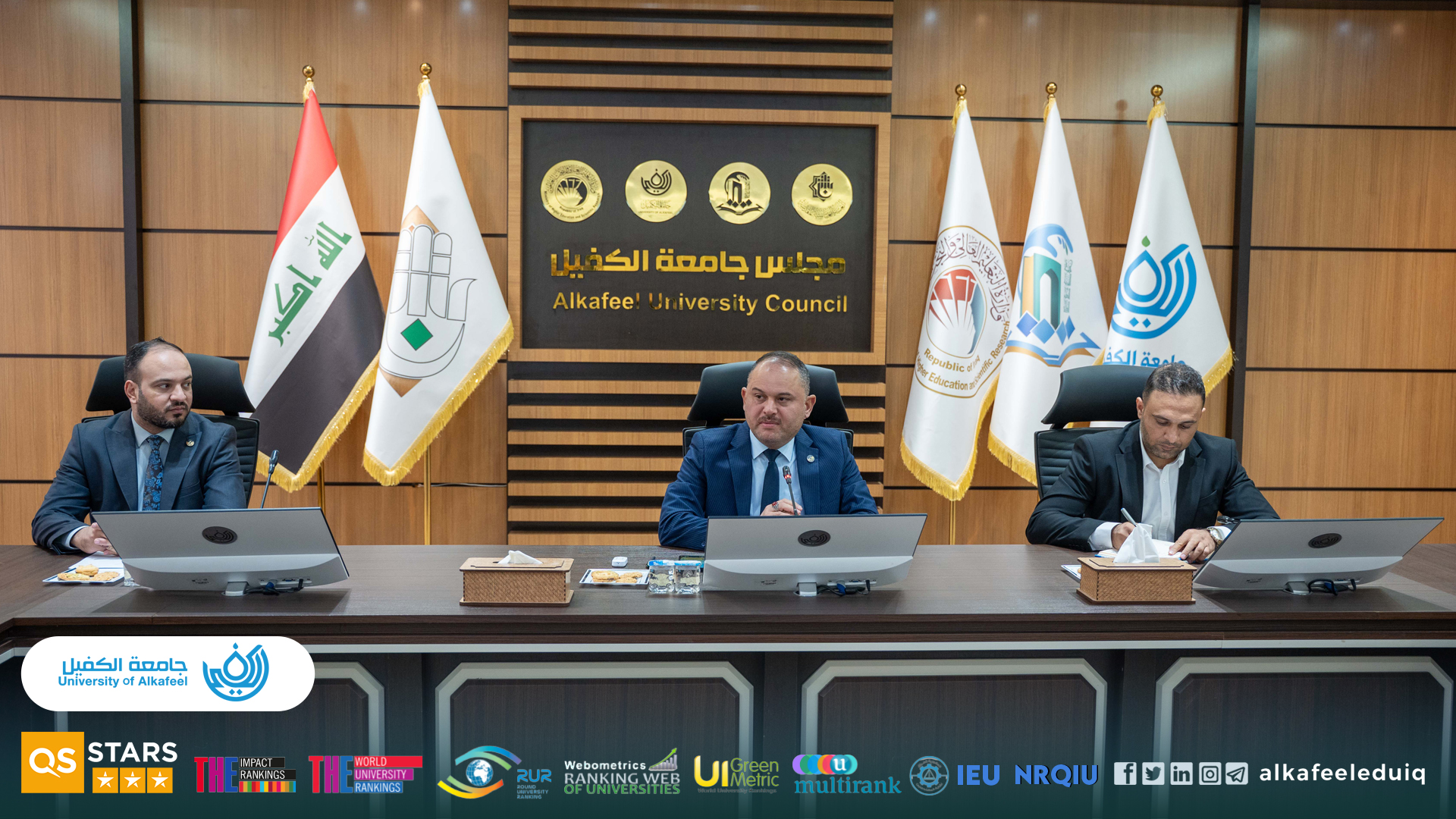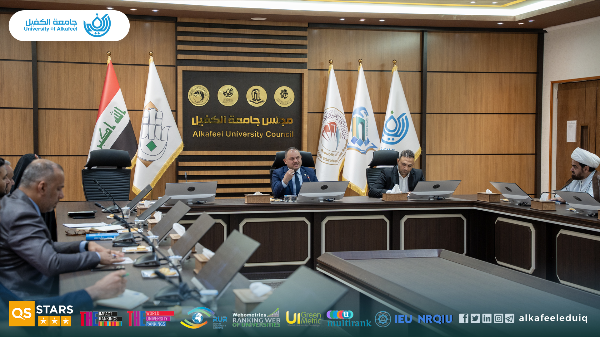 عقد مجلس جامعة الكفيل اجتماعه للعام الدراسي 2025–2026 يوم السبت الموافق 2025/10/12 برئاسة السيد رئيس الجامعة الأستاذ الدكتور نورس محمد شهيد الدهان وبحضور السيدة المساعد العلمي الأستاذة الدكتورة نوال عائد الميالي والسادة عمداء الكليات ومعاونيهم.