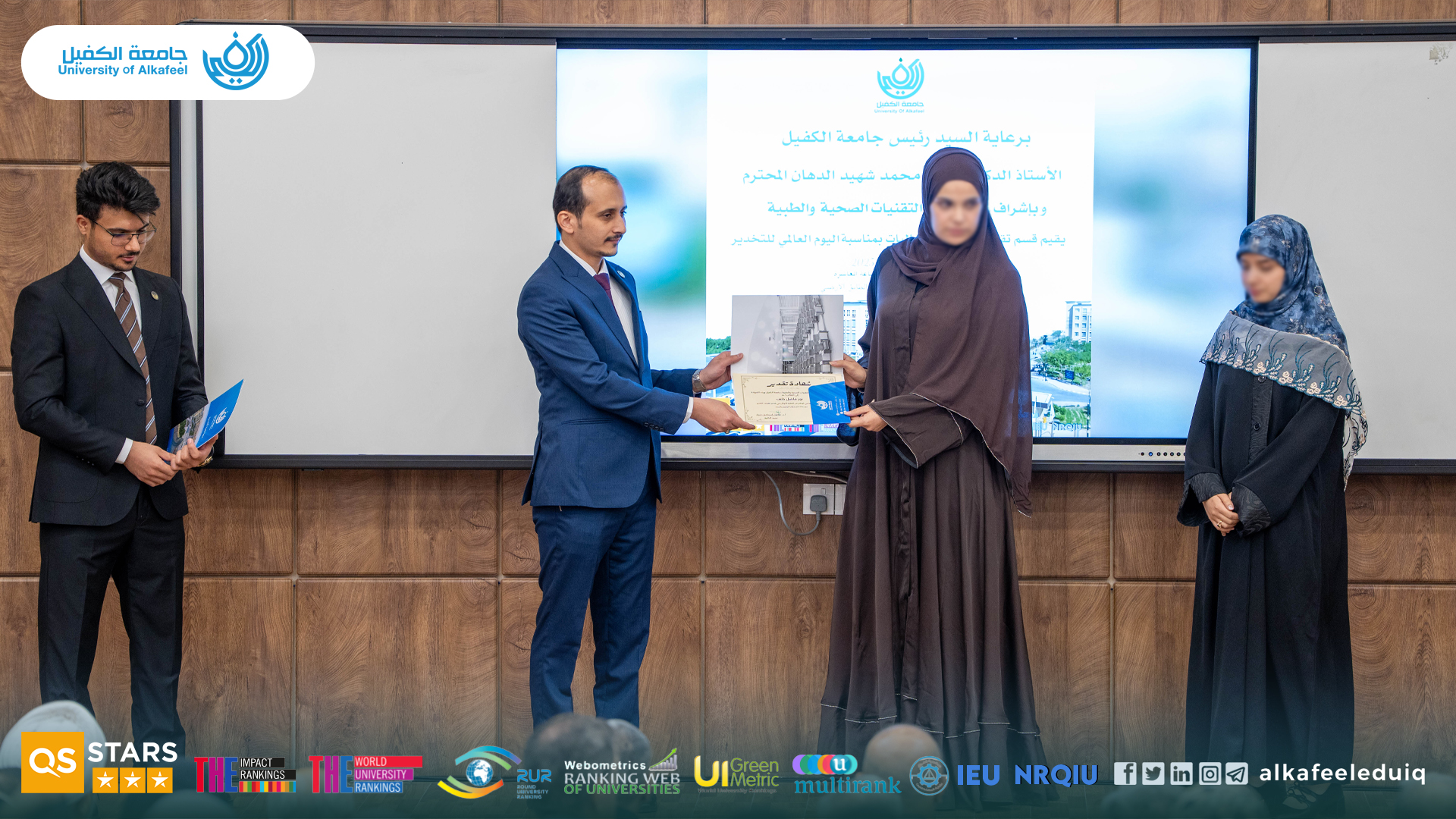برعاية السيد رئيس جامعة الكفيل الأستاذ الدكتور نورس محمد شهيد الدهان المحترم وبإشراف عمادة كلية التقنيات الصحية والطبية أقام قسم تقنيات التخدير فعاليات بمناسبة اليوم العالمي للتخدير يوم 2025/10/18.