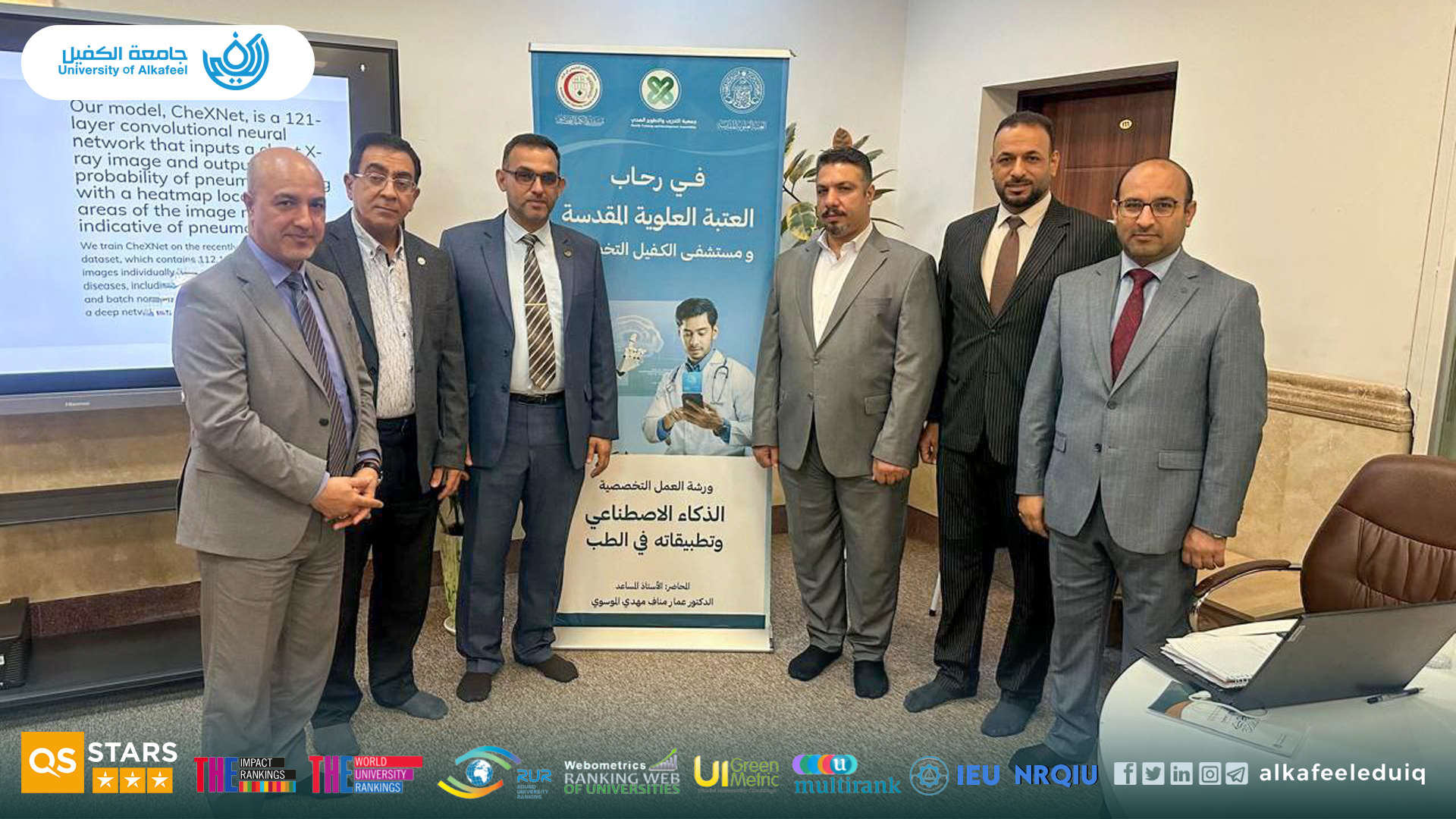 شارك وفد من تدريسيي جامعة الكفيل في ورشة عمل متخصصة بعنوان الذكاء الصناعي وتطبيقاته في الطب والتي أقيمت بالتعاون بين العتبة العلوية المقدسة ومستشفى الكفيل التخصصي يوم السبت المصادف 2025/10/18.