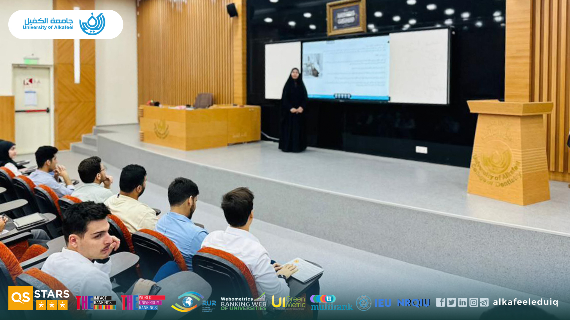 نظّم قسم الإرشاد النفسي والتوجيه التربوي في جامعة الكفيل بالتعاون مع كلية طب الأسنان يوم الاثنين الموافق 20 / 10 / 2025، محاضرةً إرشادية تربوية بعنوان “برّ الوالدين من القيم المجتمعية العليا” قدّمتها المرشدة المدرس المساعد كوثر كاظم عودة وبمشاركة طلبة المرحلة الرابعة.