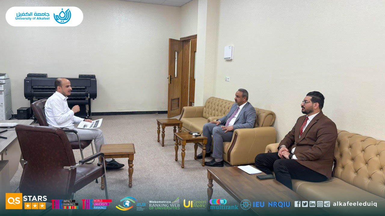 ضمن توجهات جامعة الكفيل نحو التحول الرقمي زار السيد عميد كلية طب الاسنان الأستاذ المساعد الدكتور كريم مكطوف عطية الغانم يوم الاثنين الموافق 2025/10/20 برفقة مسؤول وحدة تكنولوجيا المعلومات قسم تقنية المعلومات في الجامعة.