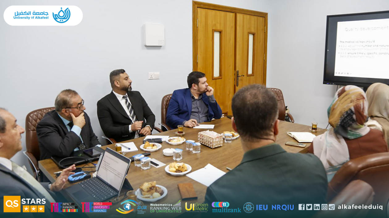 عقدت لجنة المناهج في كلية الطب بجامعة الكفيل اجتماعها الأسبوعي يوم الاثنين الموافق 2025/10/27 برئاسة الاستاذ المساعد الدكتور هلال بهجت الصفار وبحضور أعضاء اللجنة لمتابعة تنفيذ خارطة العمل الخاصة بتطوير المناهج والارتقاء بجودة التعليم الطبي بما ينسجم مع معايير الاعتمادية الوطنية والدولية.