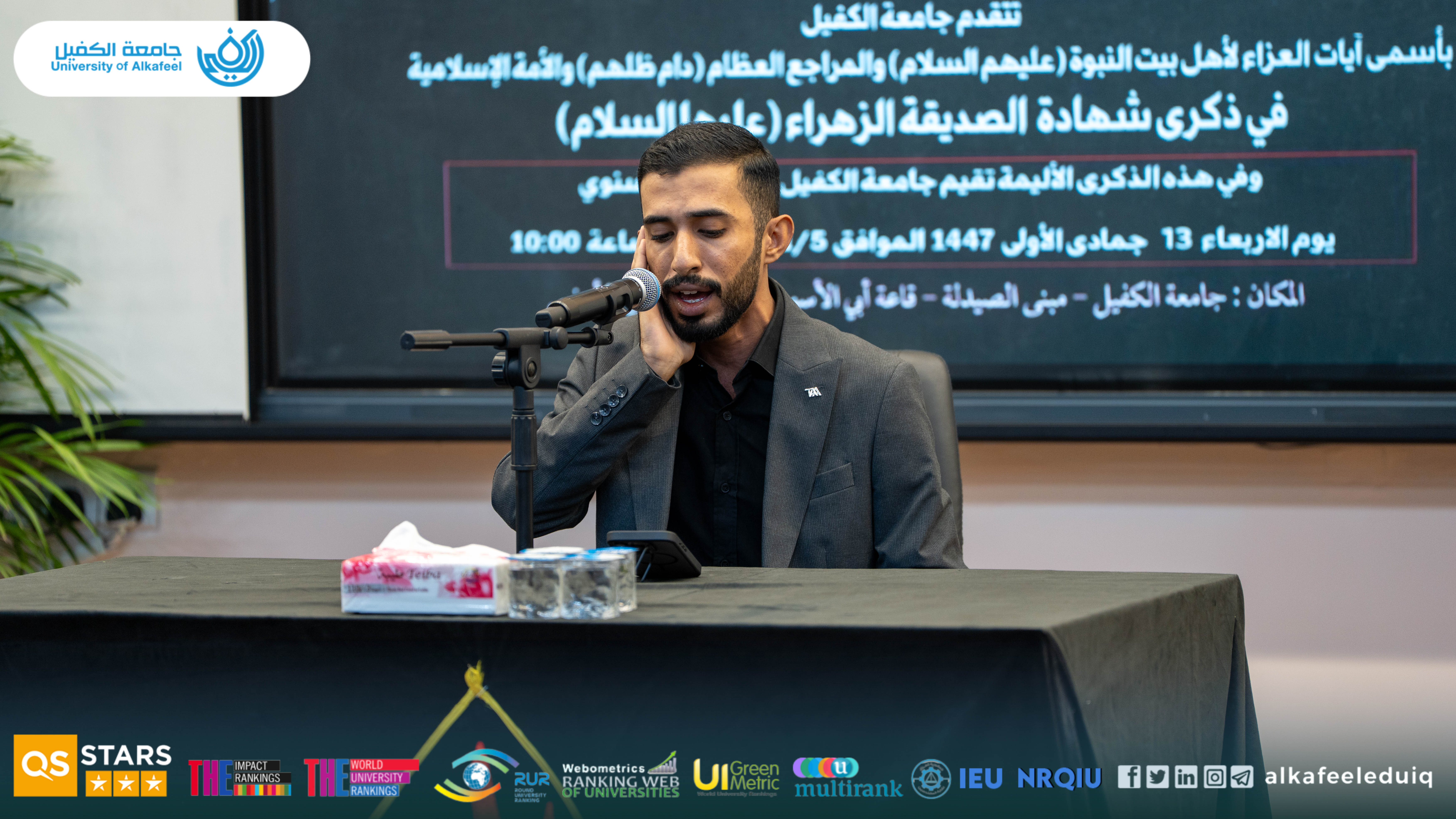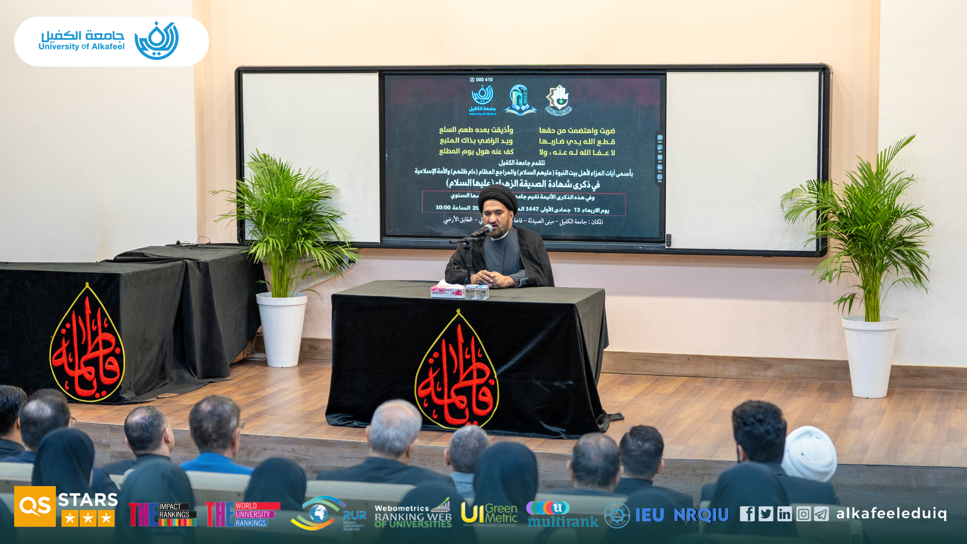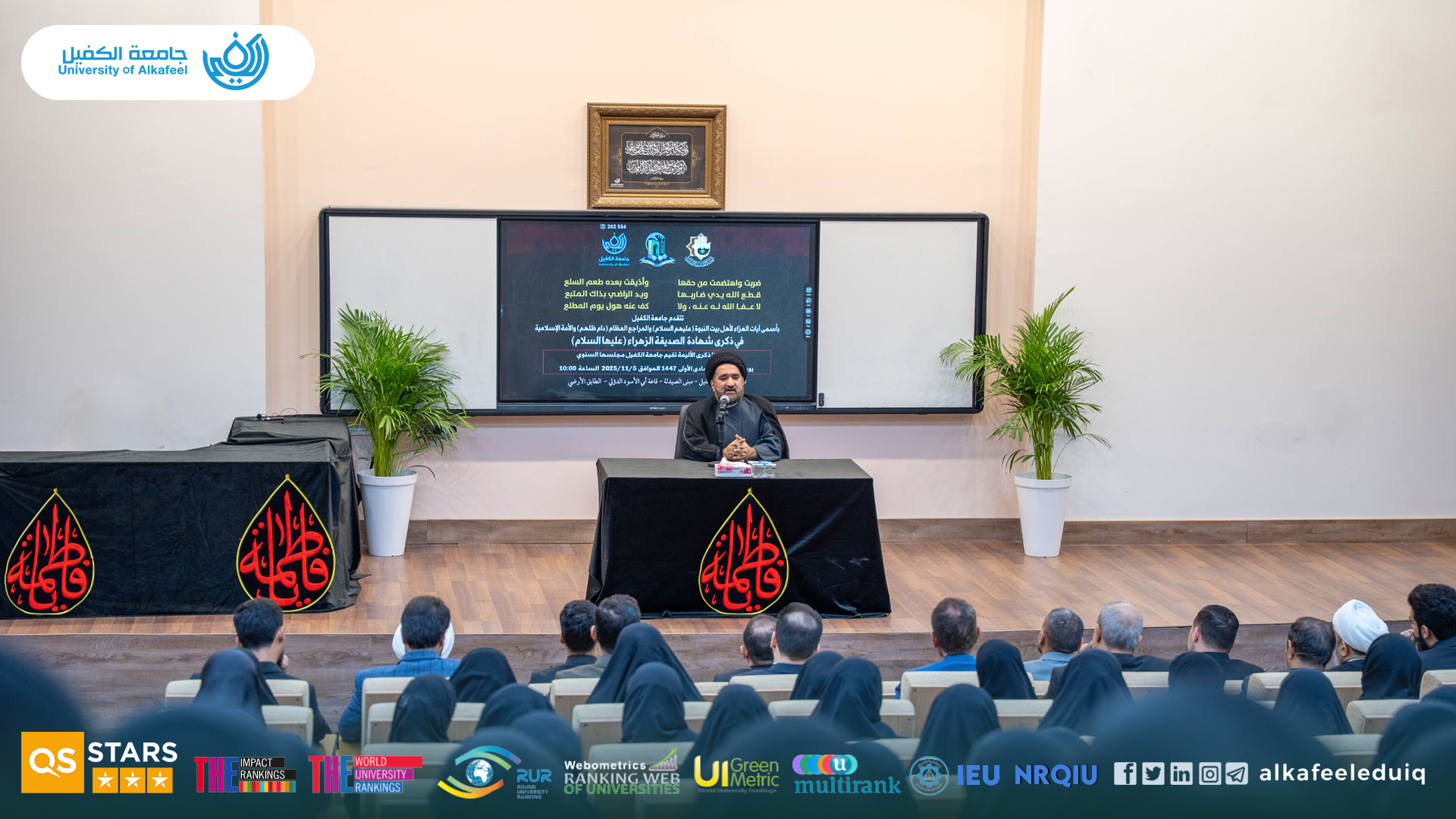 أقام قسم الإرشاد النفسي والتوجيه التربوي في جامعة الكفيل يوم الأربعاء الموافق 5 /11/ 2025 مجلس عزاء إحياءً لذكرى استشهاد سيّدة نساء العالمين السيدة فاطمة الزهراء (عليها السلام) وذلك في كلية الصيدلة بالجامعة.