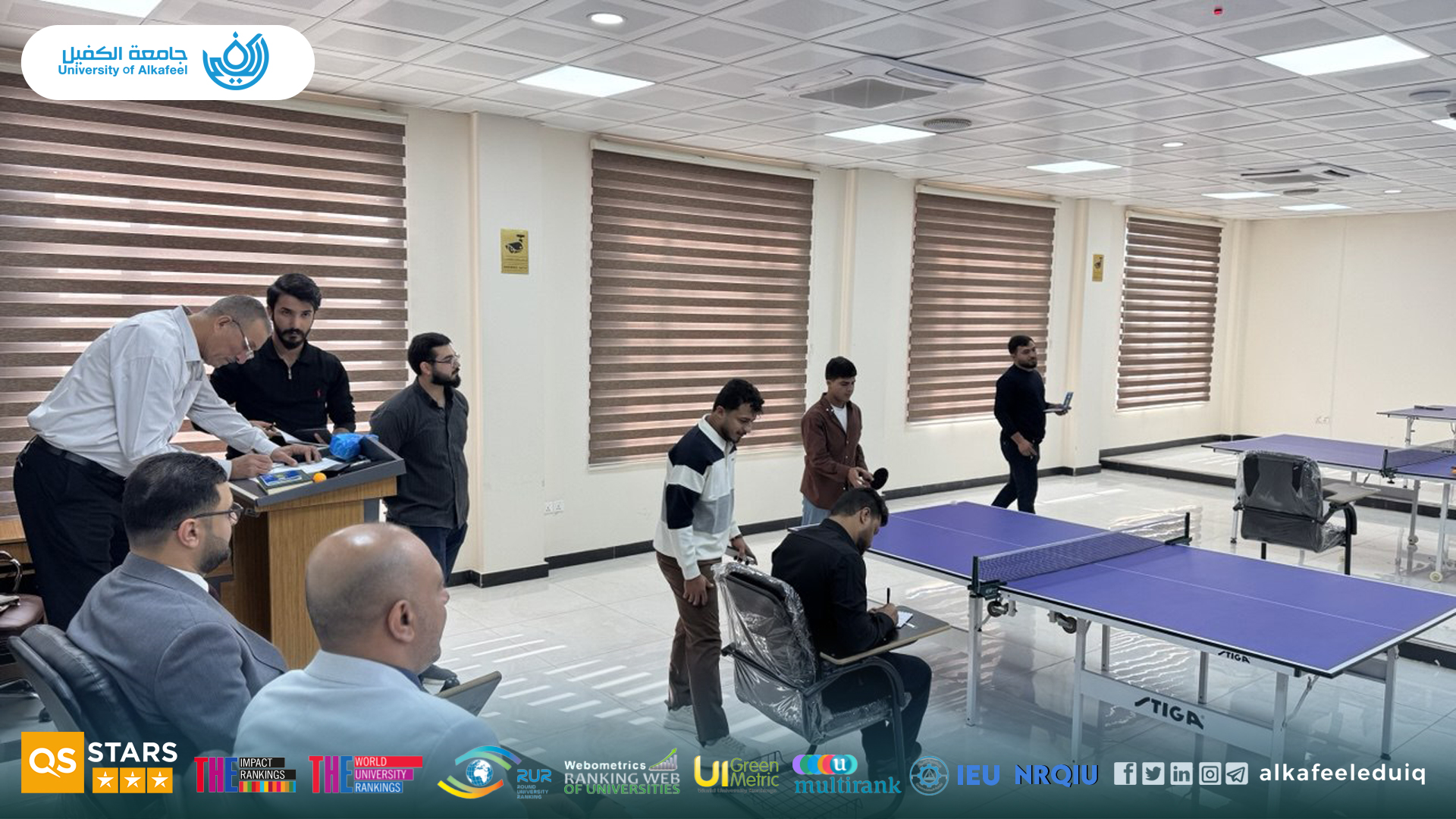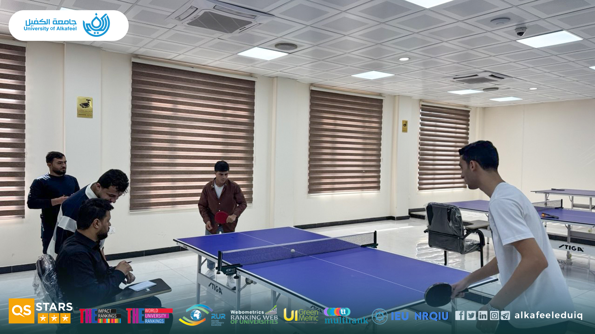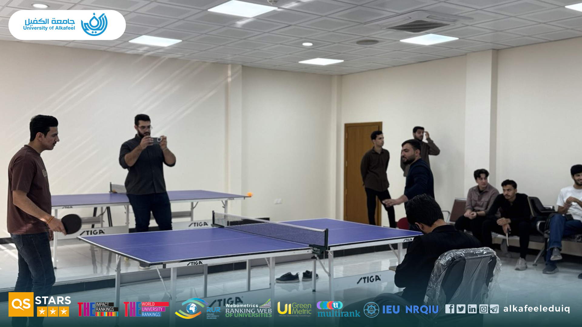 نظمت شعبة النشاطات الطلابية – قسم الأنشطة الرياضية في جامعة الكفيل يوم الأحد الموافق 2025/11/17 بطولة تنس الطاولة بمشاركة طلبة مختلف كليات الجامعة شملت كل من: كلية الطب وكلية التقنيات الصحية والطبية (قسم تقنيات المختبرات الطبية وقسم تقنيات التخدير وقسم تقنيات الأشعة) وكلية الهندسة التقنية (قسم هندسة تقنيات الحاسوب) وكلية طب الأسنان.