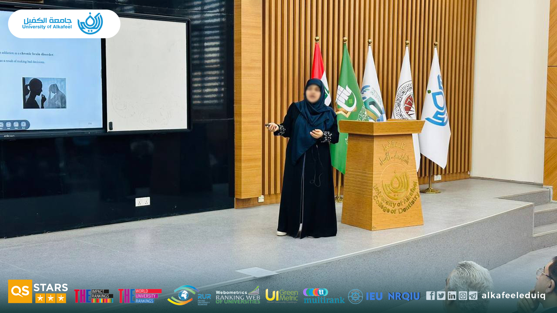 نظّمت وحدة التعليم المستمر في كلية طب الأسنان بجامعة الكفيل اليوم الاثنين الموافق 2025/11/17 محاضرة علمية توعوية بعنوان "الوقاية من المخدرات بين الوعي والفعل" قدّمها كلٌّ من المدرس الدكتور شاكر عبد الرضا عباس و المدرس الدكتور فرقان هاشم حسين.