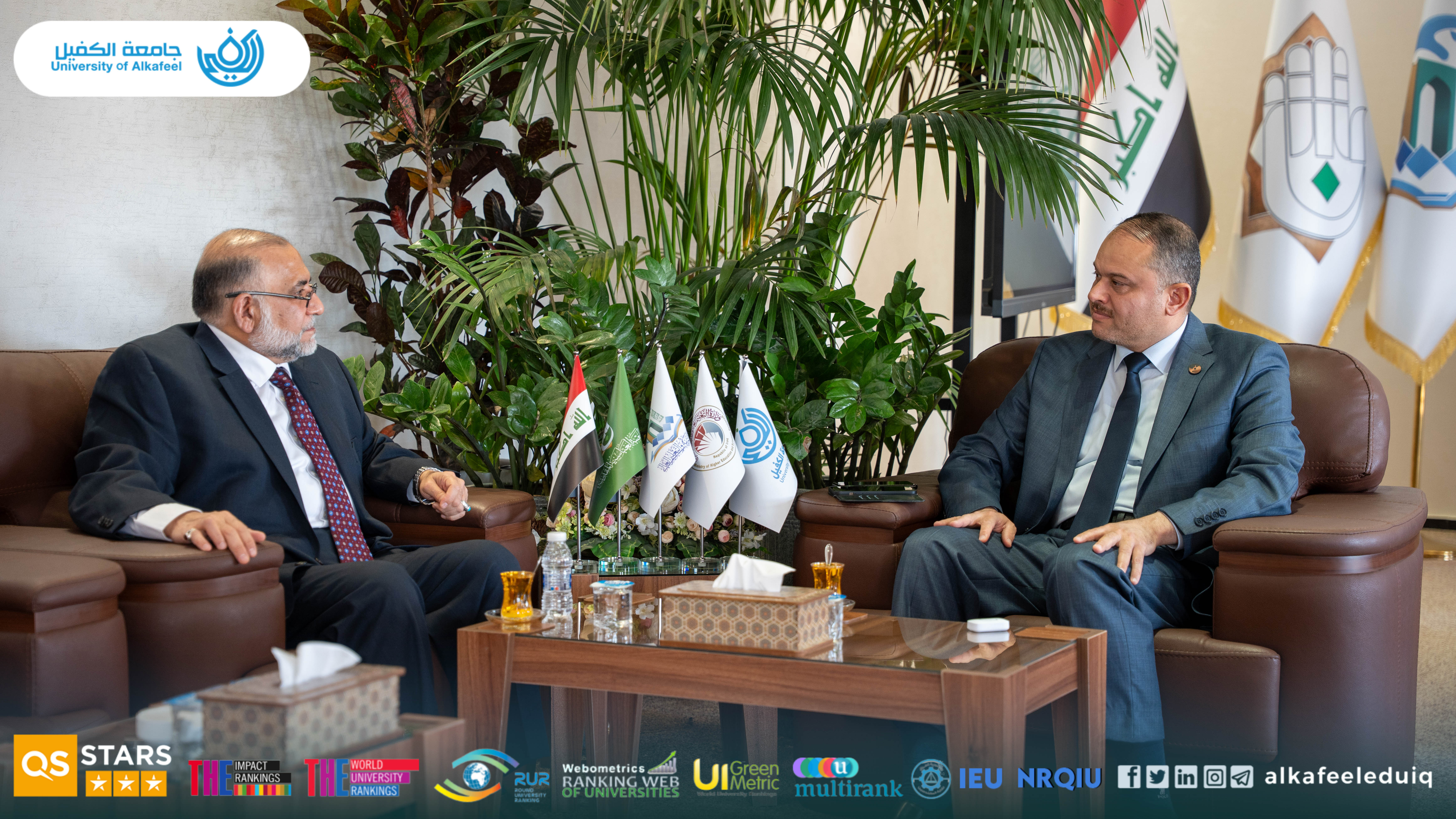 ورحّب رئيس الجامعة بالدكتور الخفاجي مؤكّدًا أهمية هذه اللقاءات التي تُسهم في تطوير البيئة التعليمية وتعزيز خبرات الطلبة حيث تطرّق الجانبان إلى عدد من الموضوعات العلمية التي تخدم العملية التعليمية وتدعم الطلبة في مجالاتهم الأكاديمية.