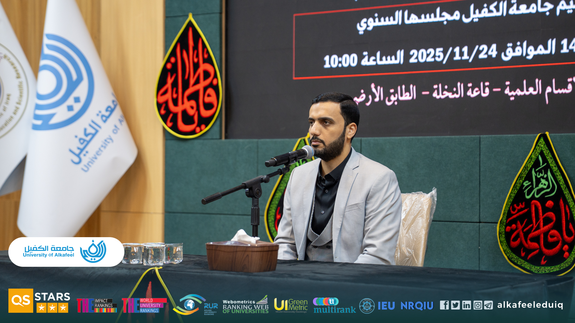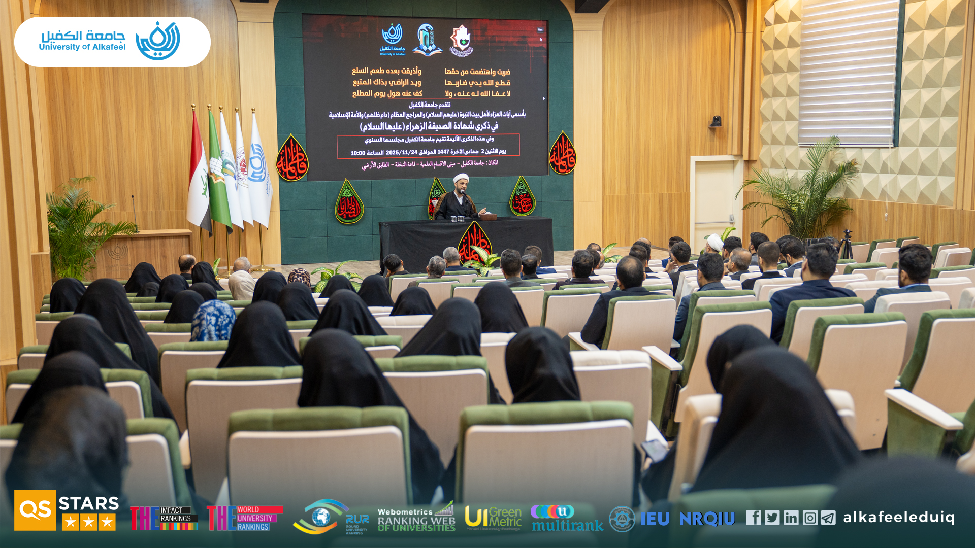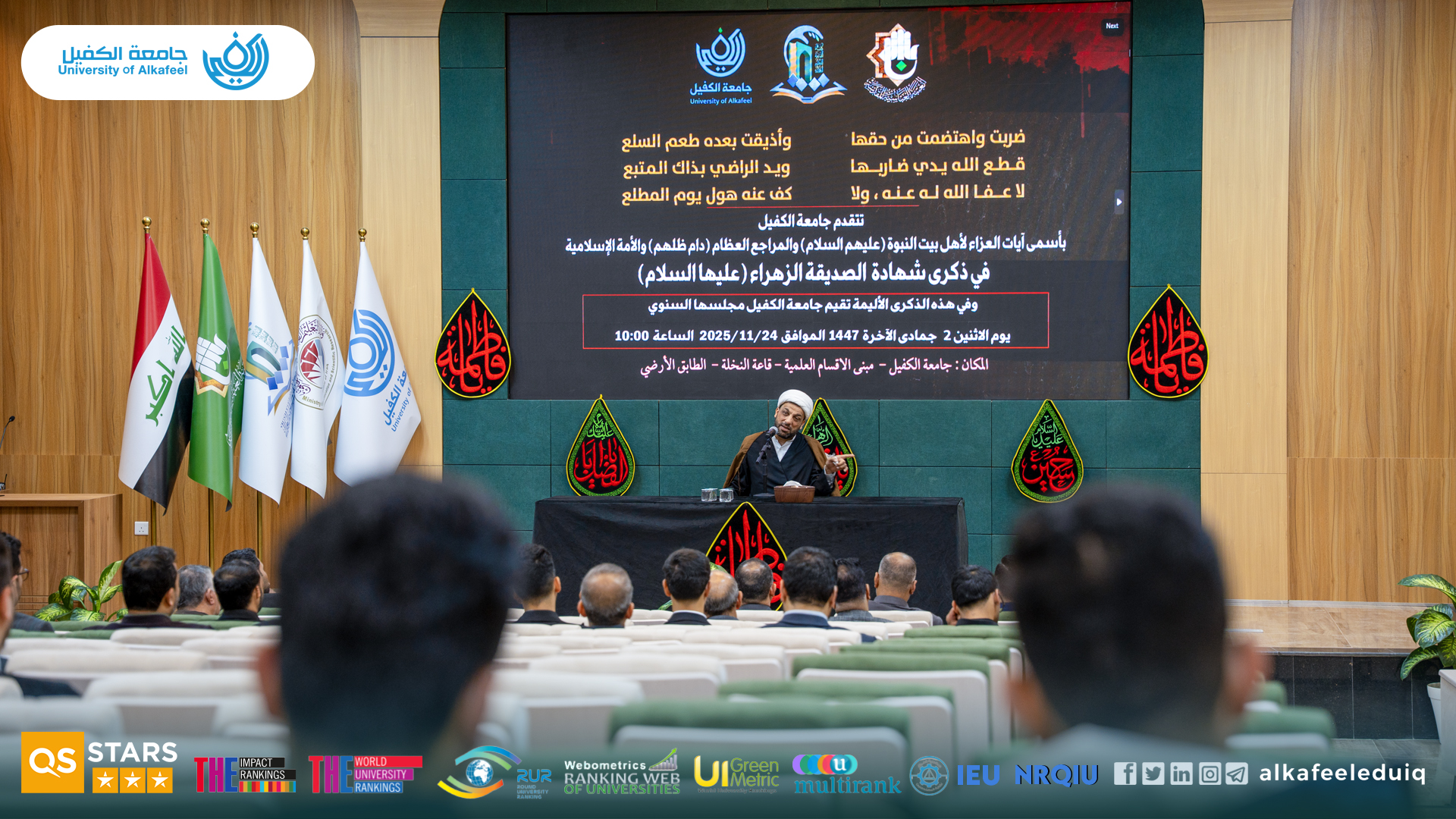 أقامت جامعة الكفيل مجلس عزاءٍ سنوياً إحياءً لذكرى استشهاد السيدة فاطمة الزهراء (عليها السلام) وذلك يوم الاثنين الموافق 2025/11/24 بحضور السيد رئيس الجامعة الأستاذ الدكتور نورس محمد شهيد الدهان والسادة العمداء والمنتسبين وجمعٍ من الطلبة.