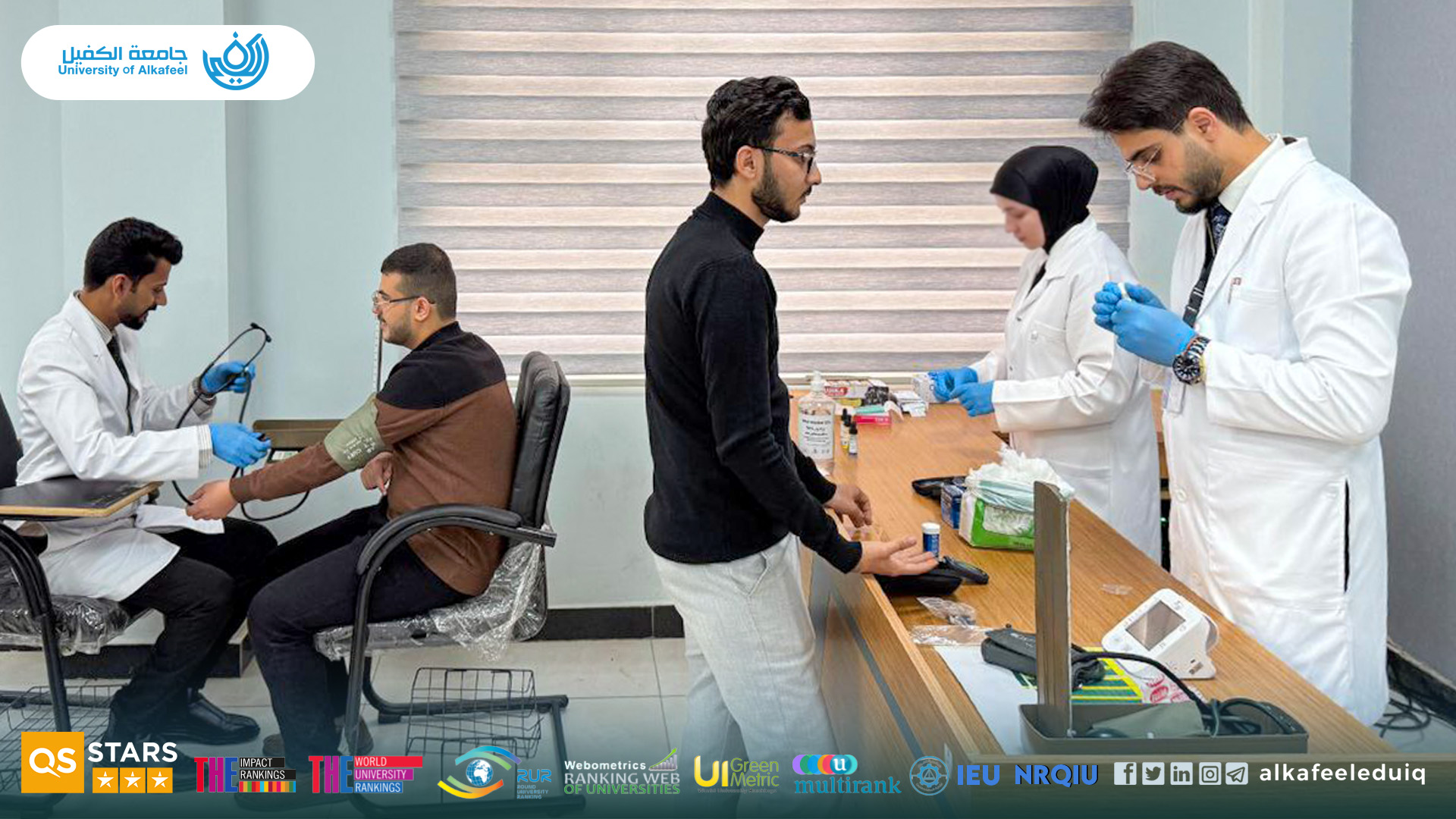 نظّمت كلية التقنيات الصحية والطبية في جامعة الكفيل حملة توعوية للكشف عن السكري والضغط وفصائل الدم.