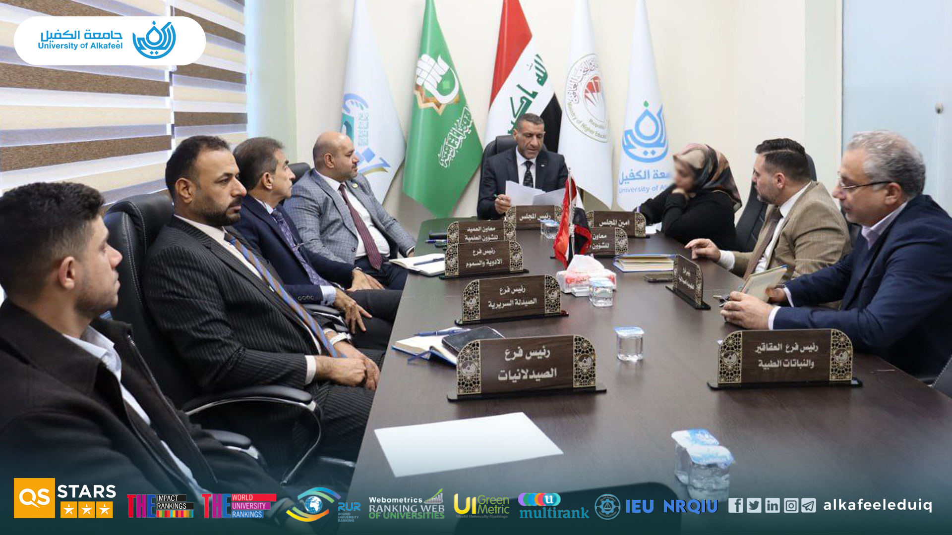 عقد مجلس كلية الصيدلة في جامعة الكفيل اجتماعه الدوري الخامس يوم الأحد الموافق 2025/12/15 في قاعة اجتماعات الكلية برئاسة السيد عميد الكلية الأستاذ المساعد الدكتور سعد مشكور الزيادي وبمشاركة السيد معاون العميد للشؤون العلمية الأستاذ الدكتور حسنين شاكر محمود والسيد معاون العميد للشؤون الإدارية الأستاذ المساعد الدكتور علي الميالي إلى جانب أعضاء المجلس.