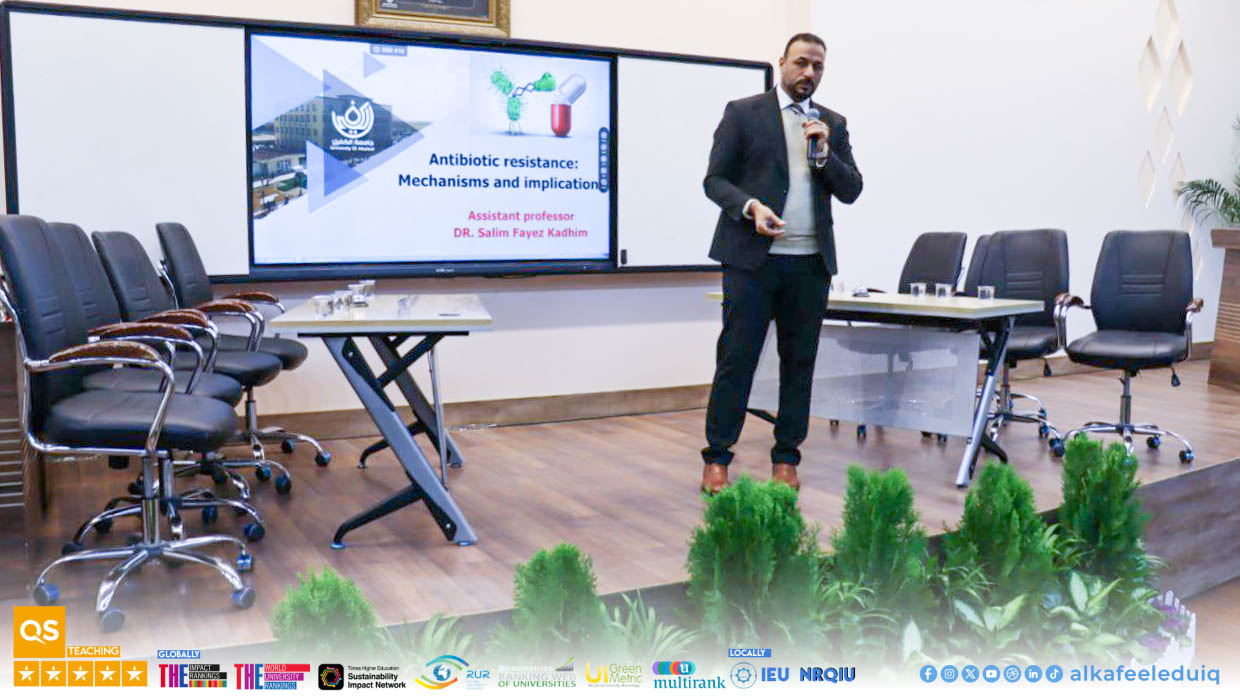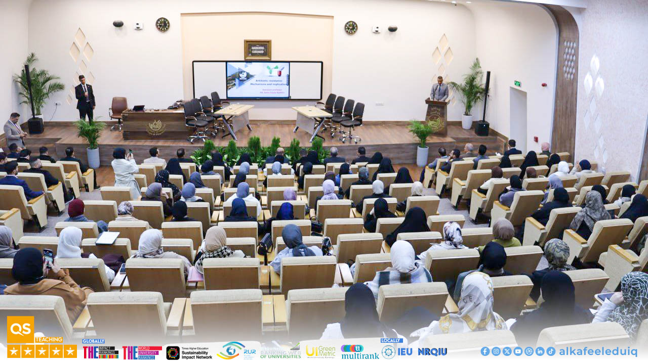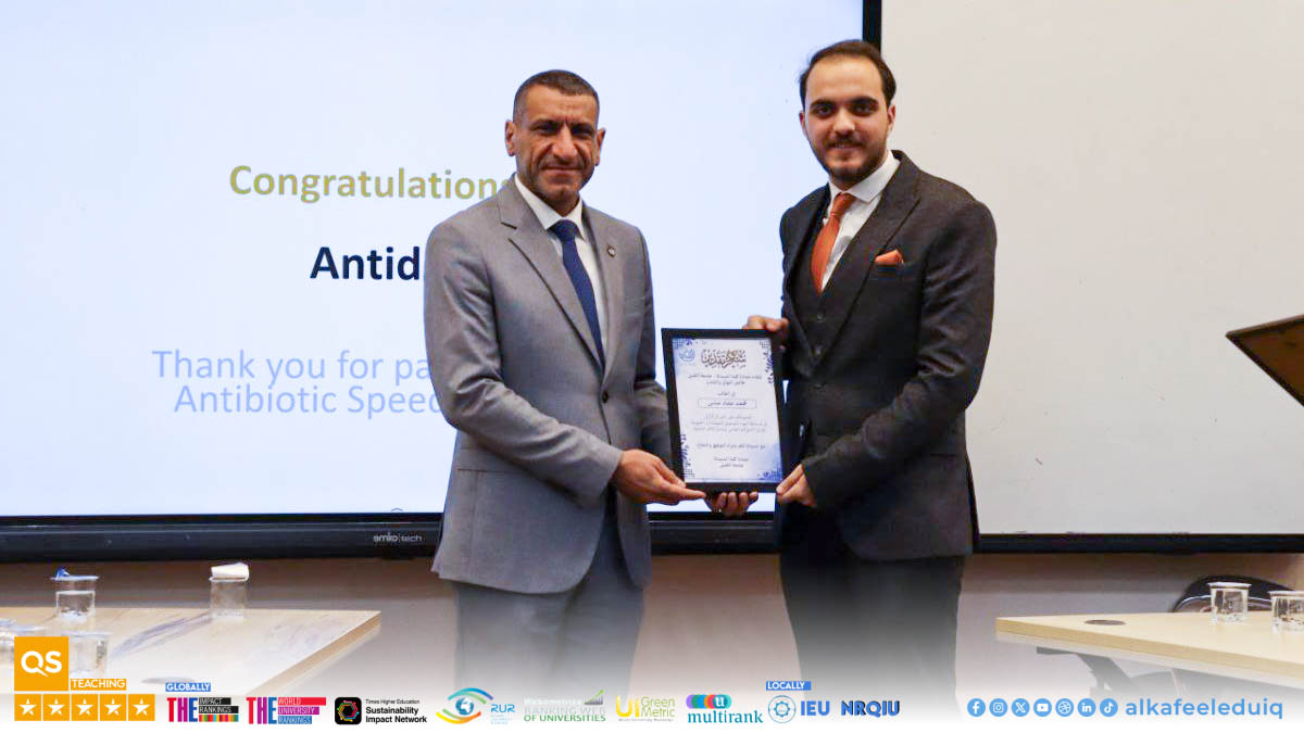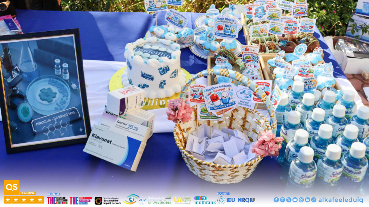 نظم فرع الصيدلة السريرية في كلية الصيدلة بجامعة الكفيل يوم السبت الموافق 2025/12/20 احتفالية بمناسبة الأسبوع العالمي للمضادات الحيوية بهدف التوعية بالاستخدام الرشيد للمضادات الحيوية وأهمية مكافحة مقاومة الجراثيم للأدوية.