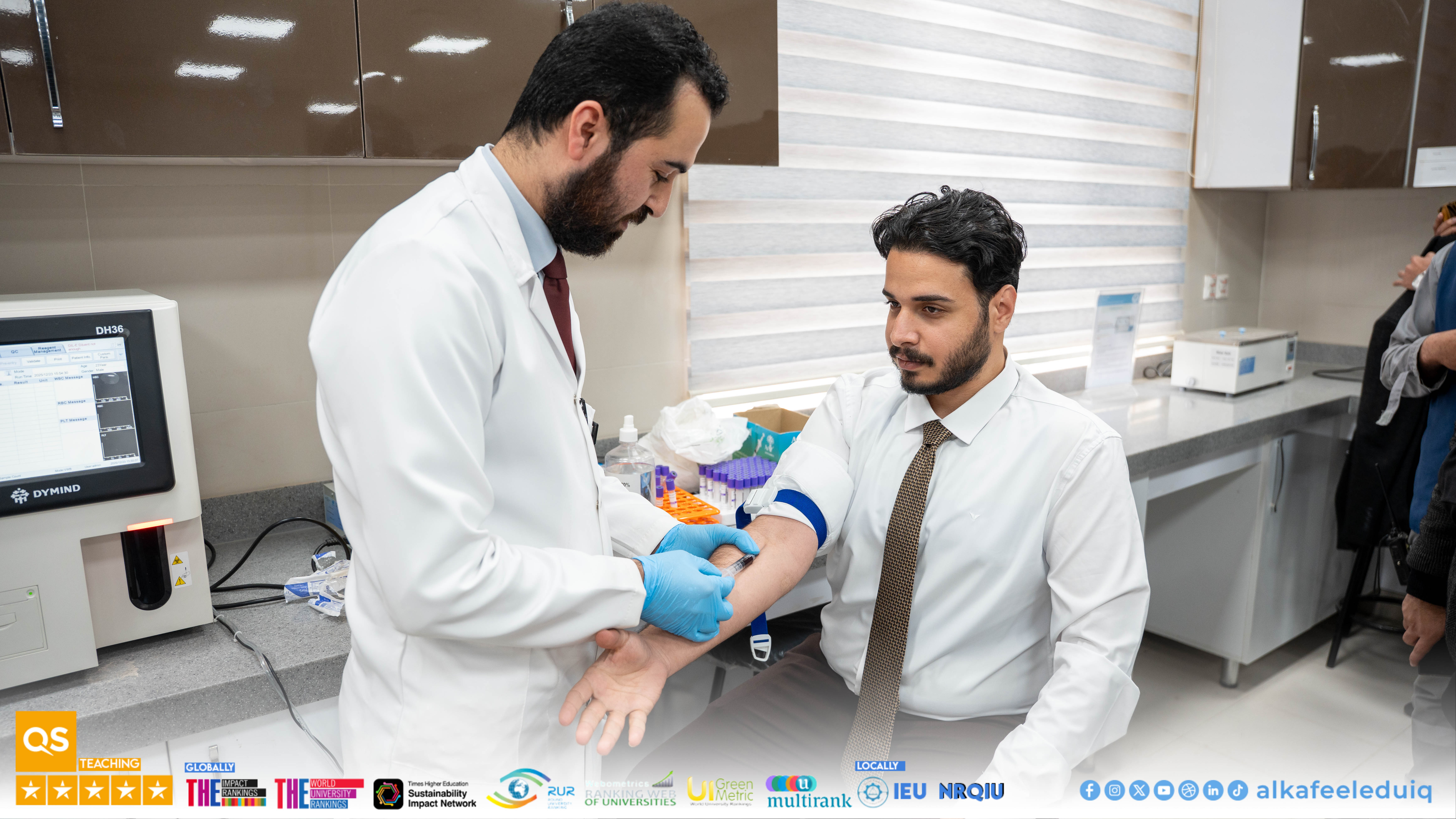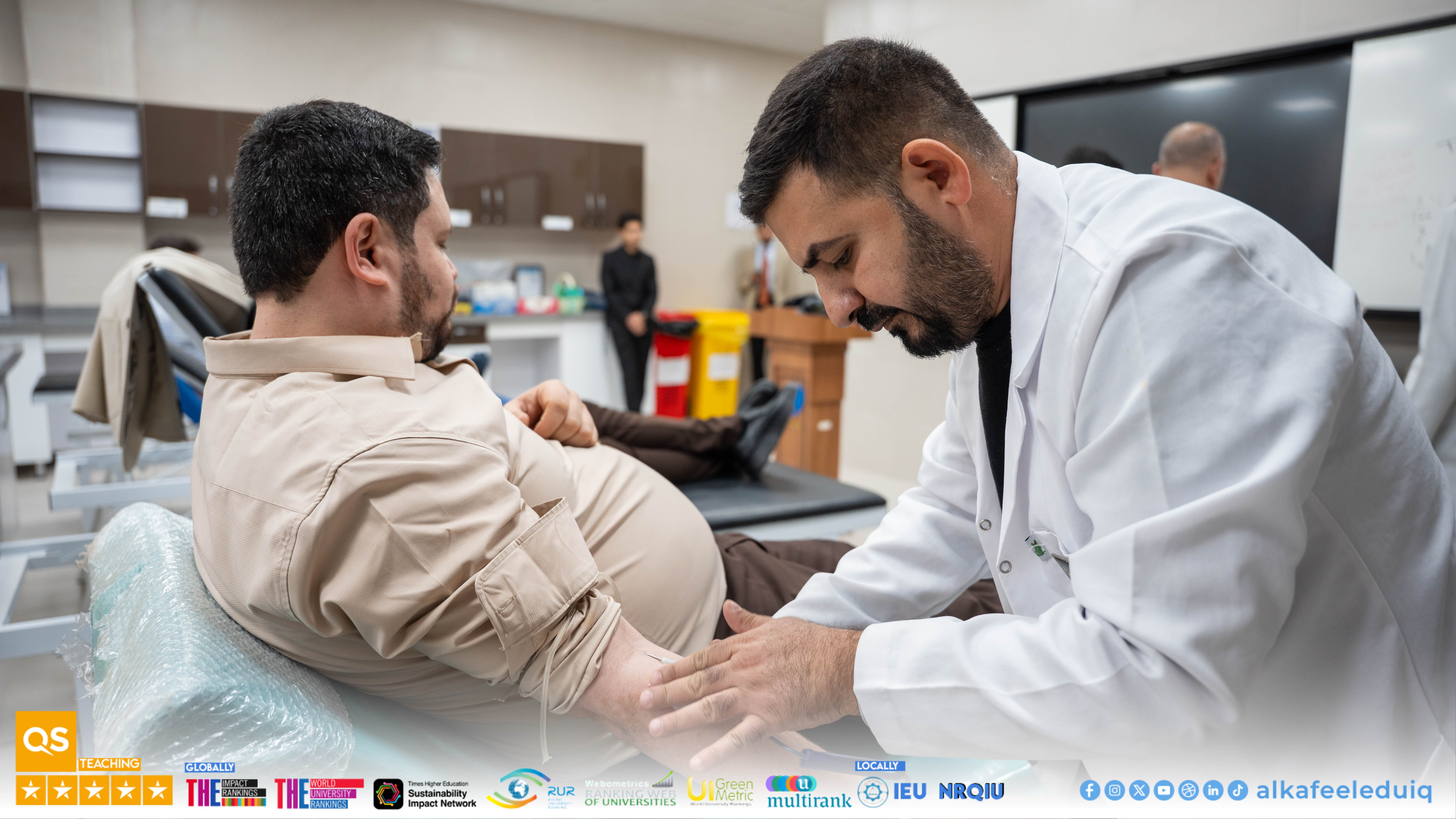 نظّمت كلية الطب في جامعة الكفيل بالتعاون مع دائرة صحة النجف الأشرف يوم الثلاثاء الموافق 2025/12/23 حملة تبرع بالدم بحضور رئيس الجامعة الأستاذ الدكتور نورس محمد شهيد الدهان وشارك فيها موظفو وطلبة ومنتسبو الجامعة.