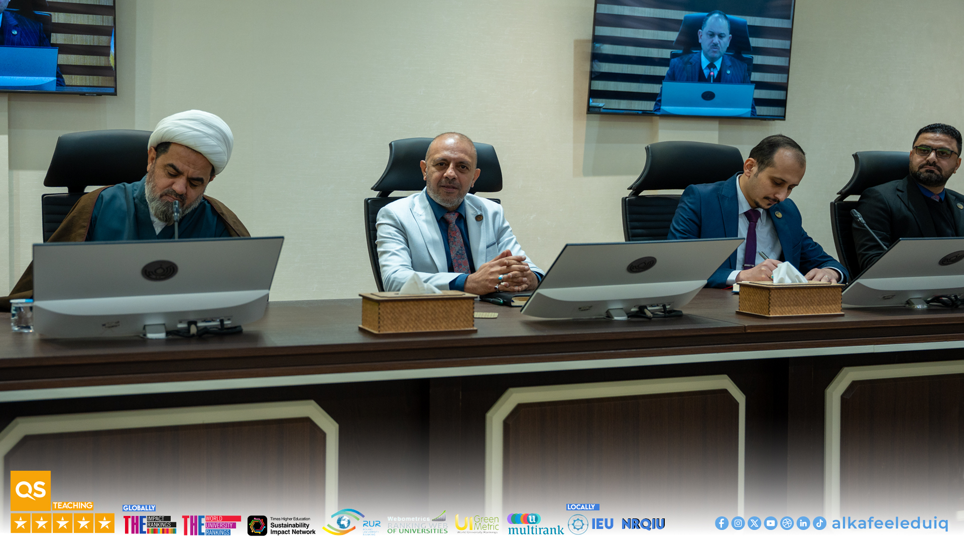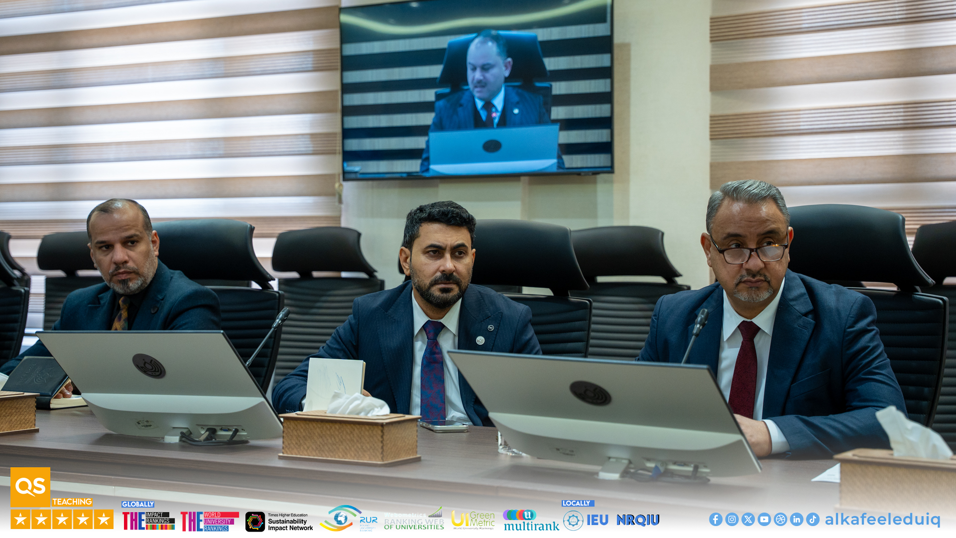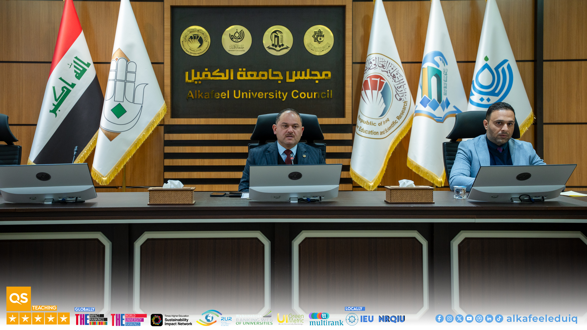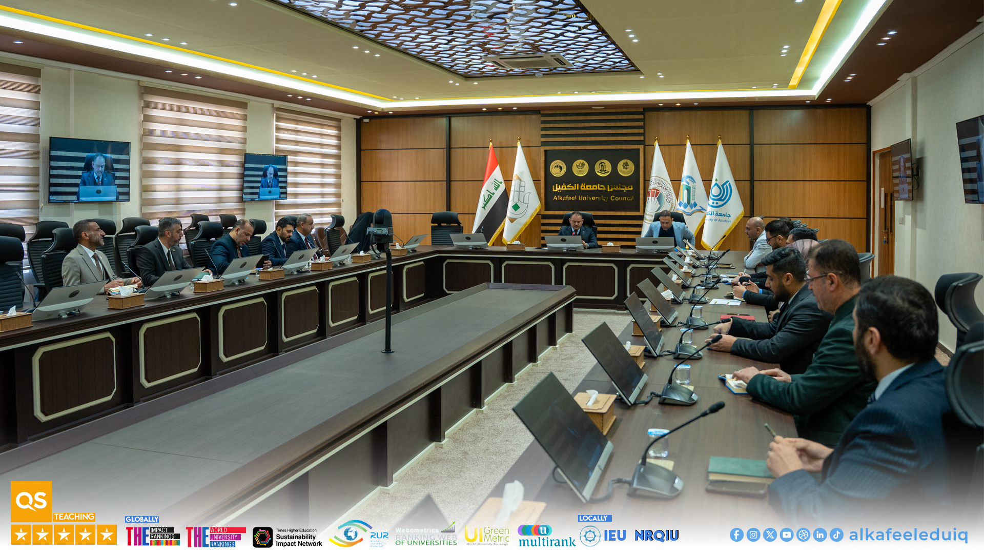 عقدت جامعة الكفيل جلستها الرابعة برئاسة السيد رئيس الجامعة الأستاذ الدكتور نورس محمد شهيد الدهان وبحضور المساعد العلمي لرئيس الجامعة الأستاذ الدكتور نوال عائد الميالي ومشاركة السادة العمداء والمعاونين وذلك يوم الثلاثاء الموافق 2025/12/30.