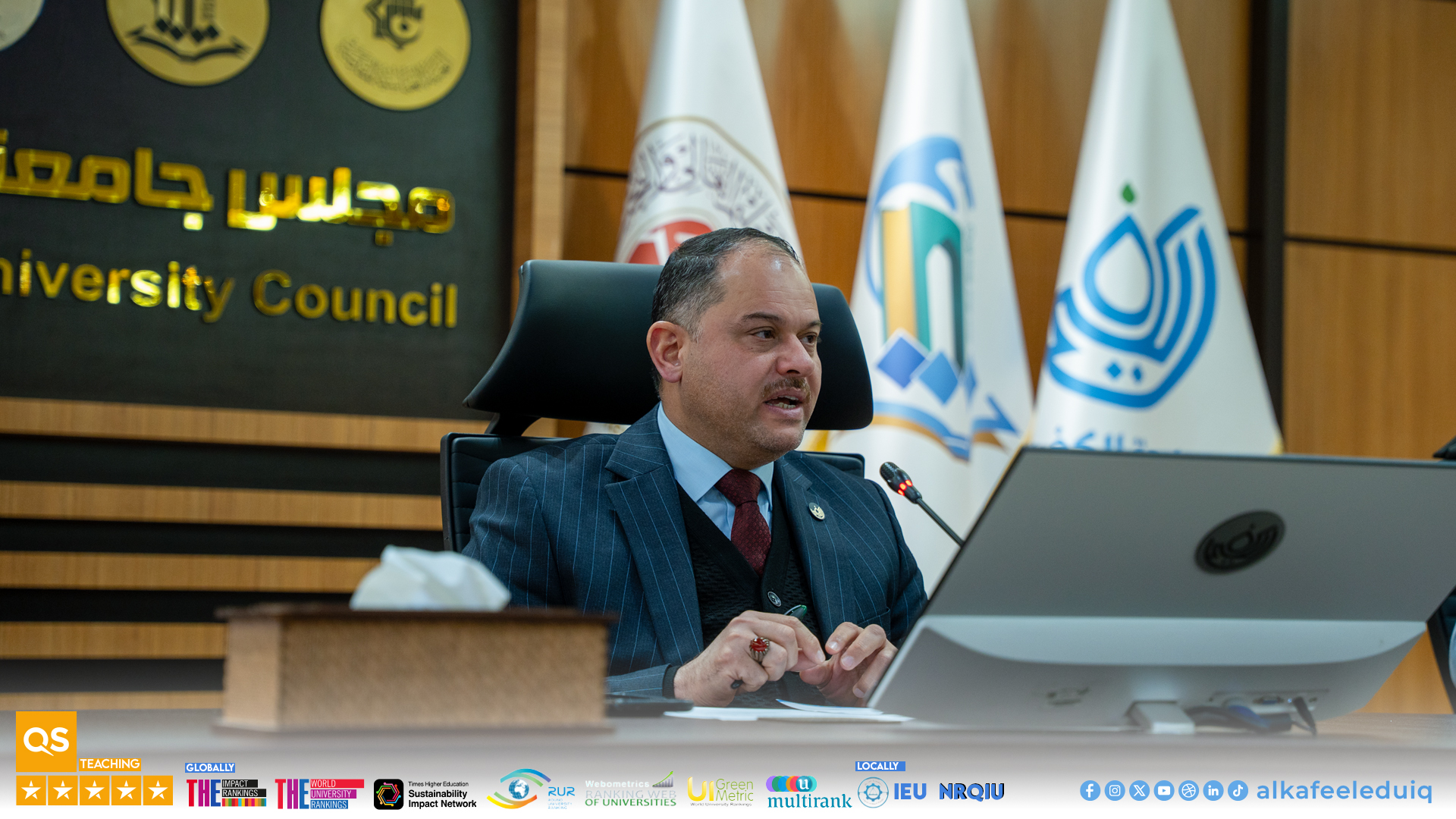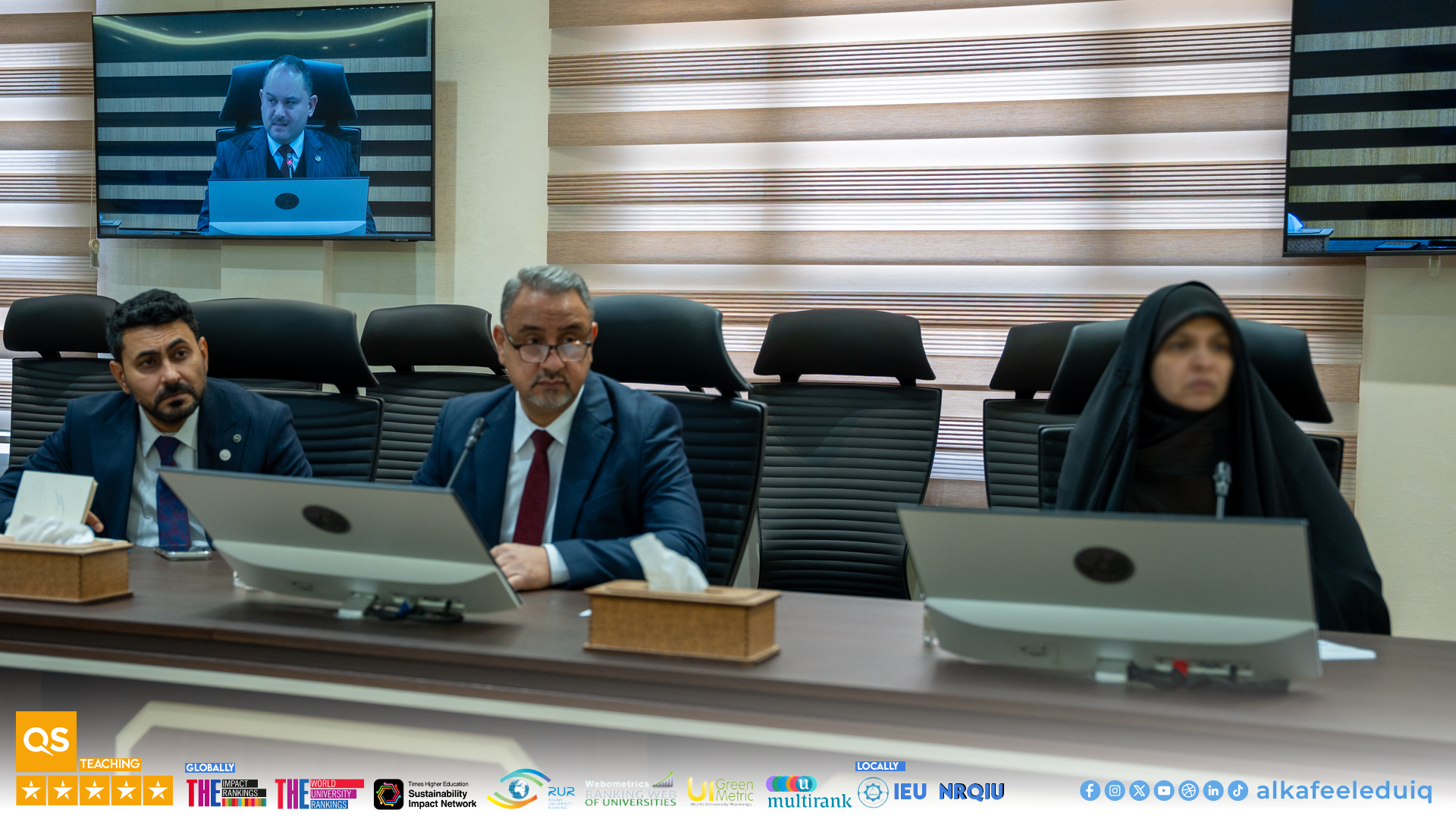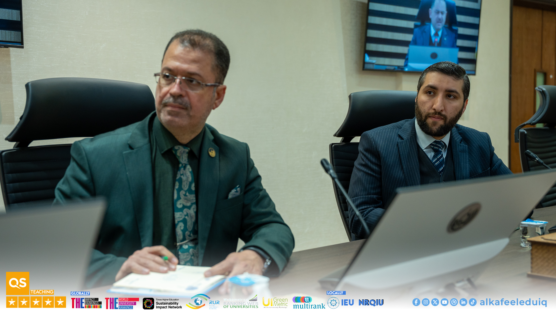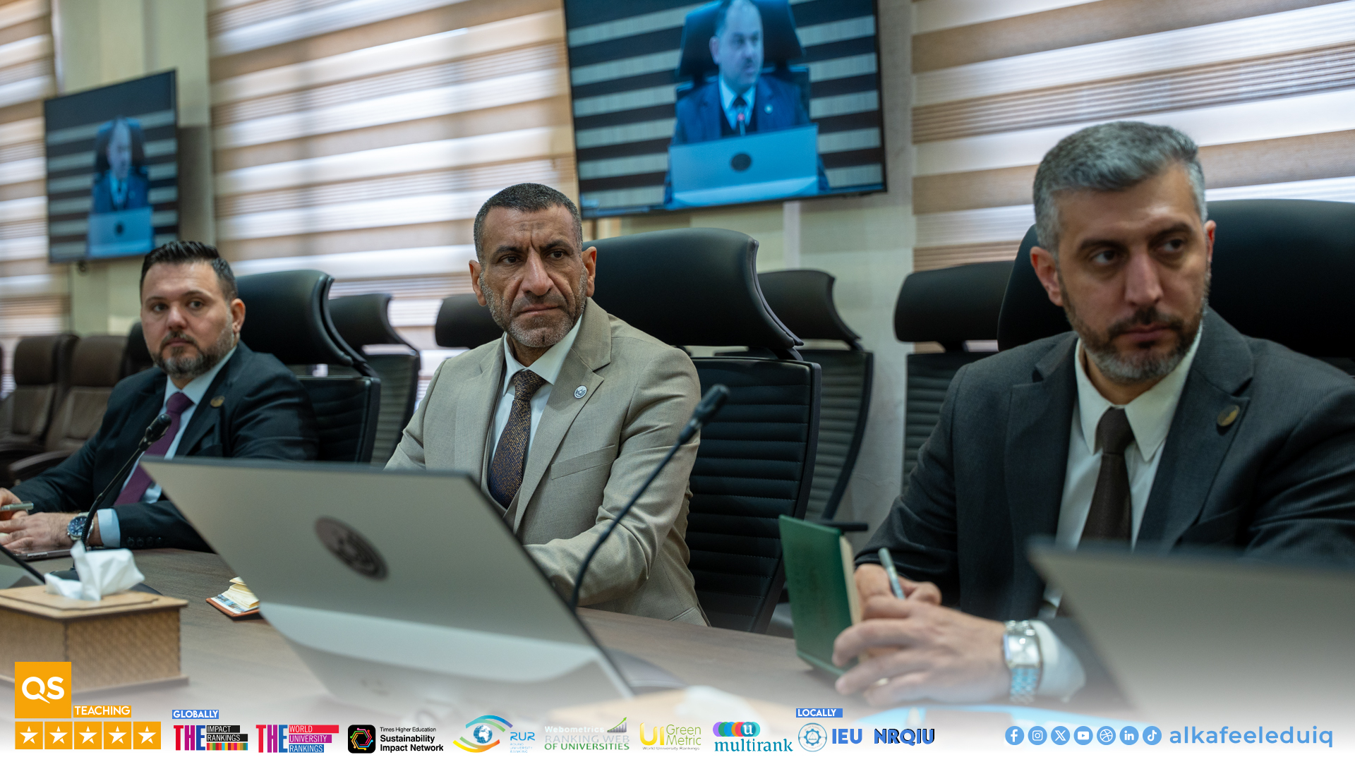 عقدت جامعة الكفيل جلستها الرابعة برئاسة السيد رئيس الجامعة الأستاذ الدكتور نورس محمد شهيد الدهان وبحضور المساعد العلمي لرئيس الجامعة الأستاذ الدكتور نوال عائد الميالي ومشاركة السادة العمداء والمعاونين وذلك يوم الثلاثاء الموافق 2025/12/30.