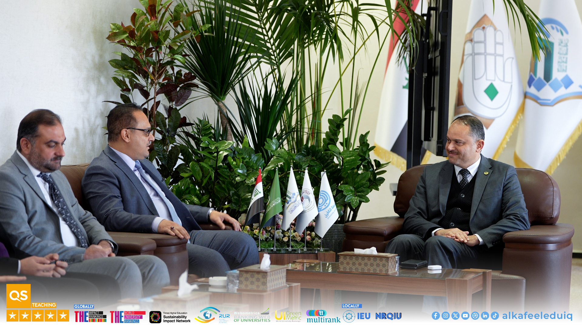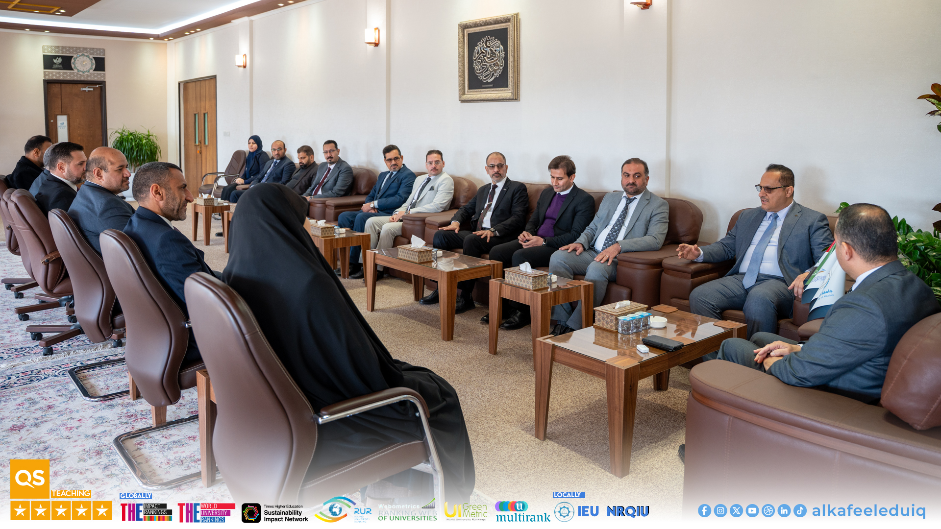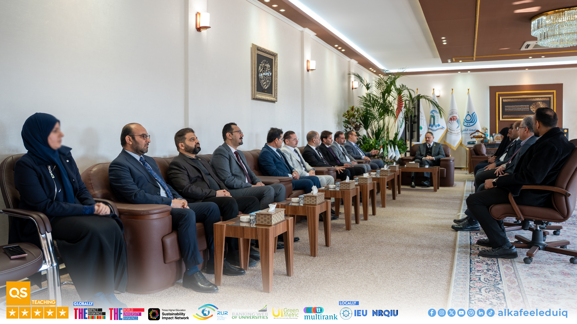 استقبل الأستاذ الدكتور نورس محمد شهيد الدهان رئيس جامعة الكفيل وفد كلية الصيدلة بجامعة الكوفة بحضور الأستاذة الدكتورة نوال عائد الميالي مساعد رئيس الجامعة للشؤون العلمية والأستاذ المساعد الدكتور سعد مشكور وليد الزيادي عميد كلية الصيدلة بجامعة الكفيل إلى جانب السادة معاوني العميد للشؤون العلمية والإدارية يوم الاربعاء الموافق 2025/12/31.