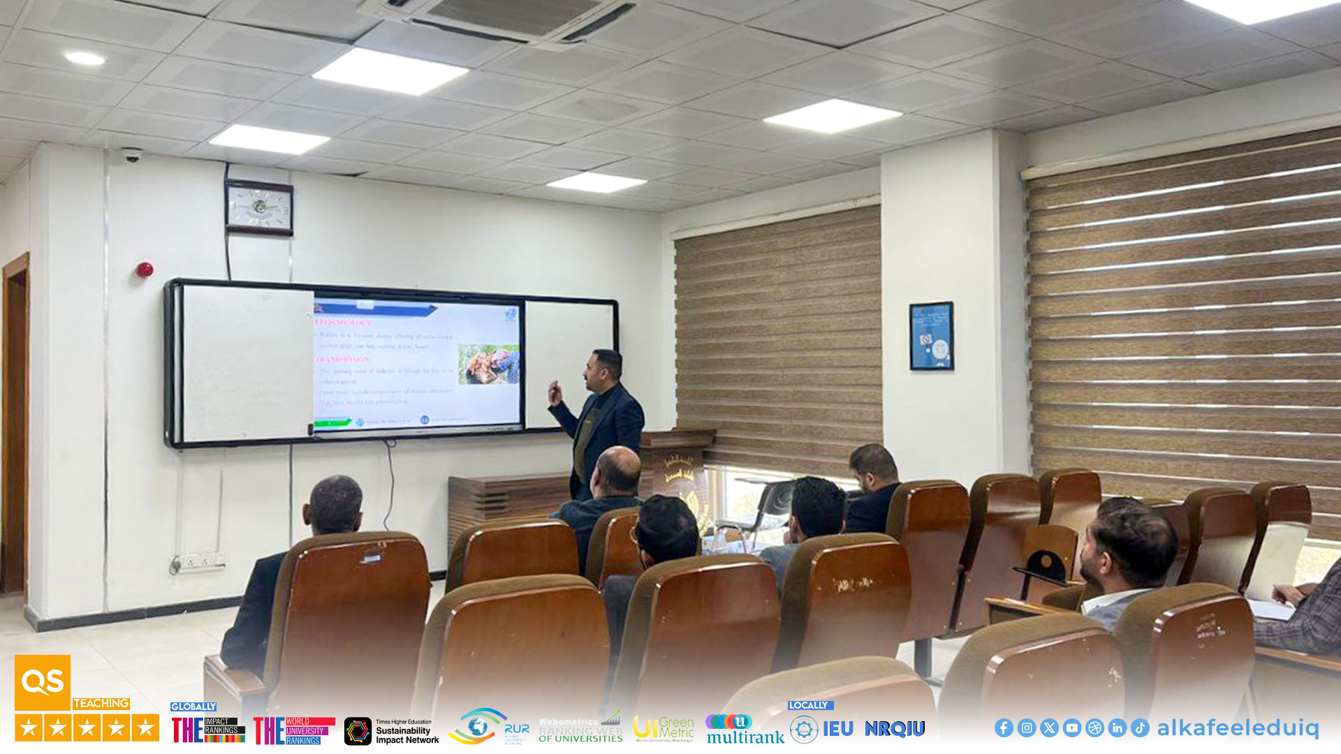نظمت كلية الصيدلة بجامعة الكفيل دورة توعوية علمية بعنوان "أهم الأمراض التي تسببها الحيوانات المنزلية" يوم الاثنين الموافق 2026/1/5 قدمها المدرس المساعد أمير عبدالحسين عبد العباس بمشاركة التدريسيين والمنتسبين للكلية.
