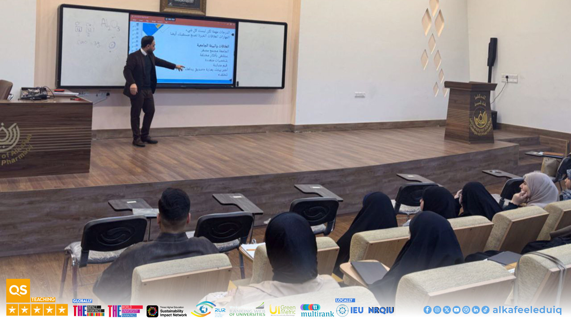 ففي كلية الصيدلة ألقى المدرس المساعد حيدر عدنان غازي شبع محاضرة بعنوان «كيف تبدأ حياتك الجامعية بثقة ونجاح» تناولت أهمية بناء الثقة بالنفس وتنظيم الوقت والتكيف مع البيئة الأكاديمية إضافة إلى مهارات التعلم الفعّال واستثمار الفرص الجامعية والمشاركة في الأنشطة العلمية والثقافية.