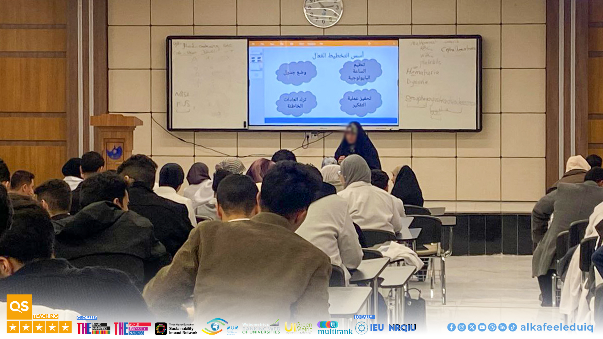 نظّم قسم الإرشاد النفسي والتوجيه التربوي في جامعة الكفيل وبالتعاون مع كلية الطب محاضرة بعنوان "التخطيط السنوي الفعّال لبداية عام ناجح"، يوم السبت الموافق 2026/1/10 قدمتها المرشدة نور الحكيم.