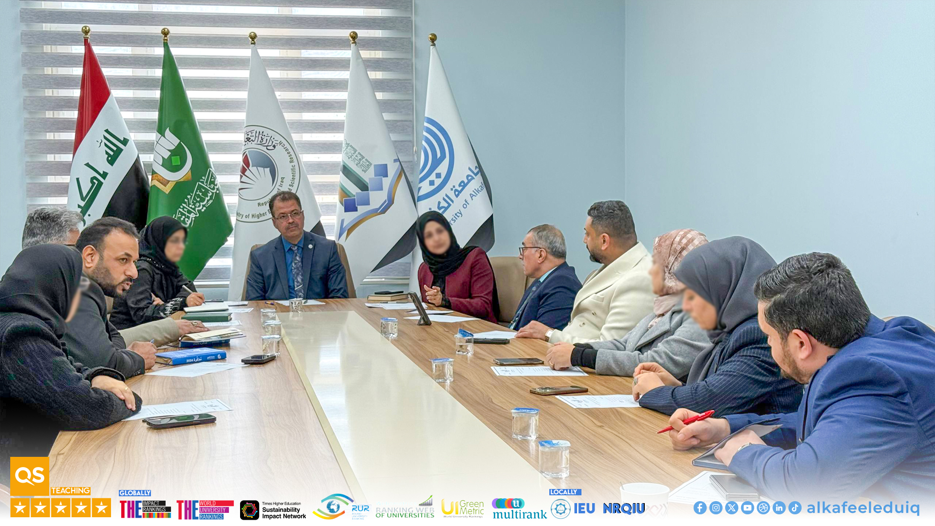 وناقش الاجتماع القضايا الأكاديمية والإدارية المتعلقة بسير العملية التعليمية واستعدادات الكلية للمؤتمر الجامعي السابع المزمع عقده يومي 28–2026/3/29 إضافة إلى متابعة السعيات السنوية للطلبة واعتماد إضافة مادة اللغة العربية للمرحلة الثانية وفق توجيهات وزارة التعليم العالي والبحث العلمي ومراجعة الجوانب التنظيمية والفنية للامتحانات النهائية.