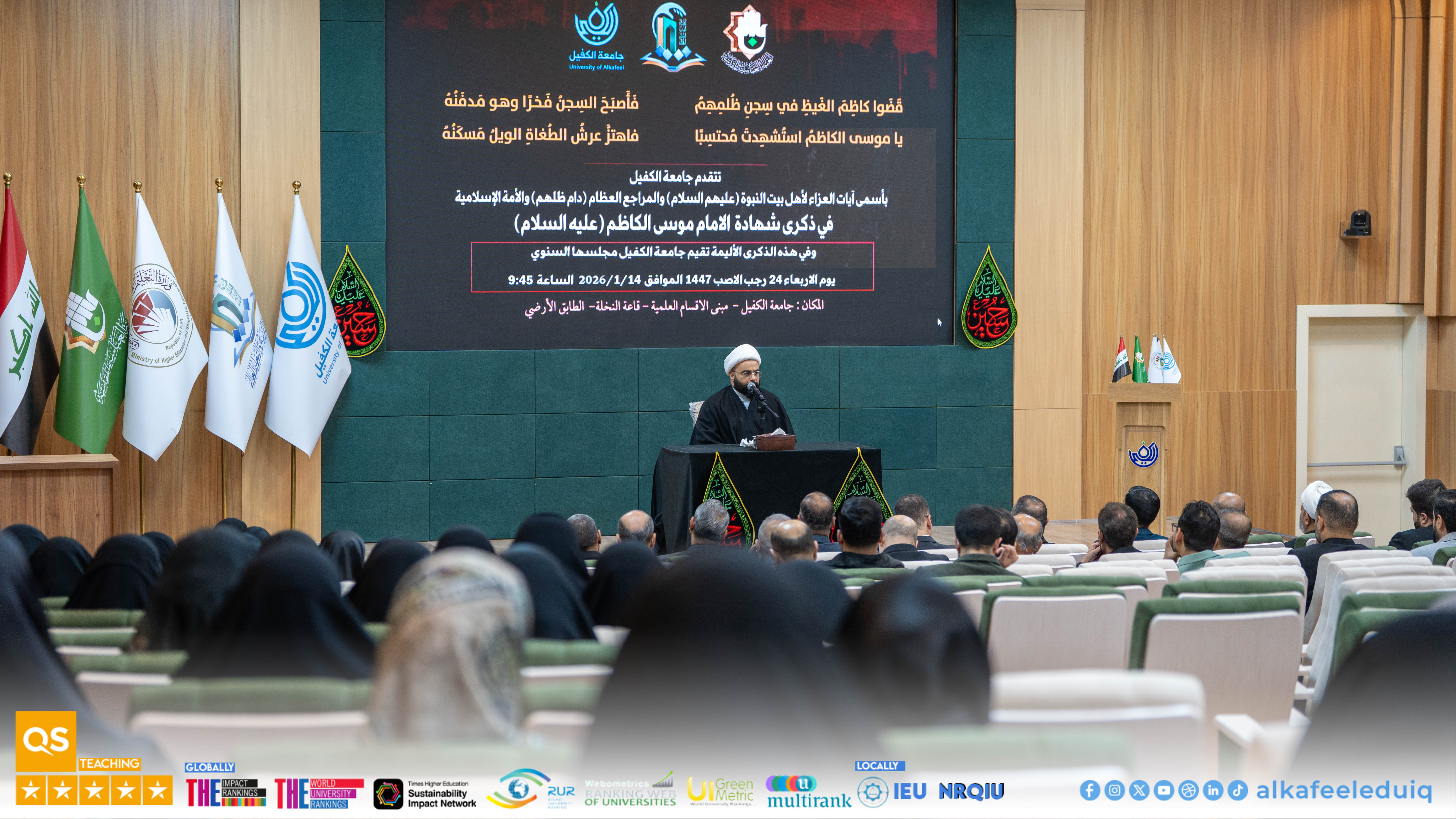 أحيا قسم الإرشاد النفسي والتوجيه التربوي في جامعة الكفيل صباح يوم الأربعاء الموافق 2026/1/14 الذكرى الأليمة لاستشهاد الإمام موسى بن جعفر (عليهما السلام) بحضور رئيس الجامعة الأستاذ الدكتور نورس محمد شهيد الدهان ومساعد رئيس الجامعة للشؤون العلمية الأستاذ الدكتور نوال عائد الميالي إلى جانب عمداء الكليات ومعاونيهم والكادر التدريسي ومنتسبي الجامعة.