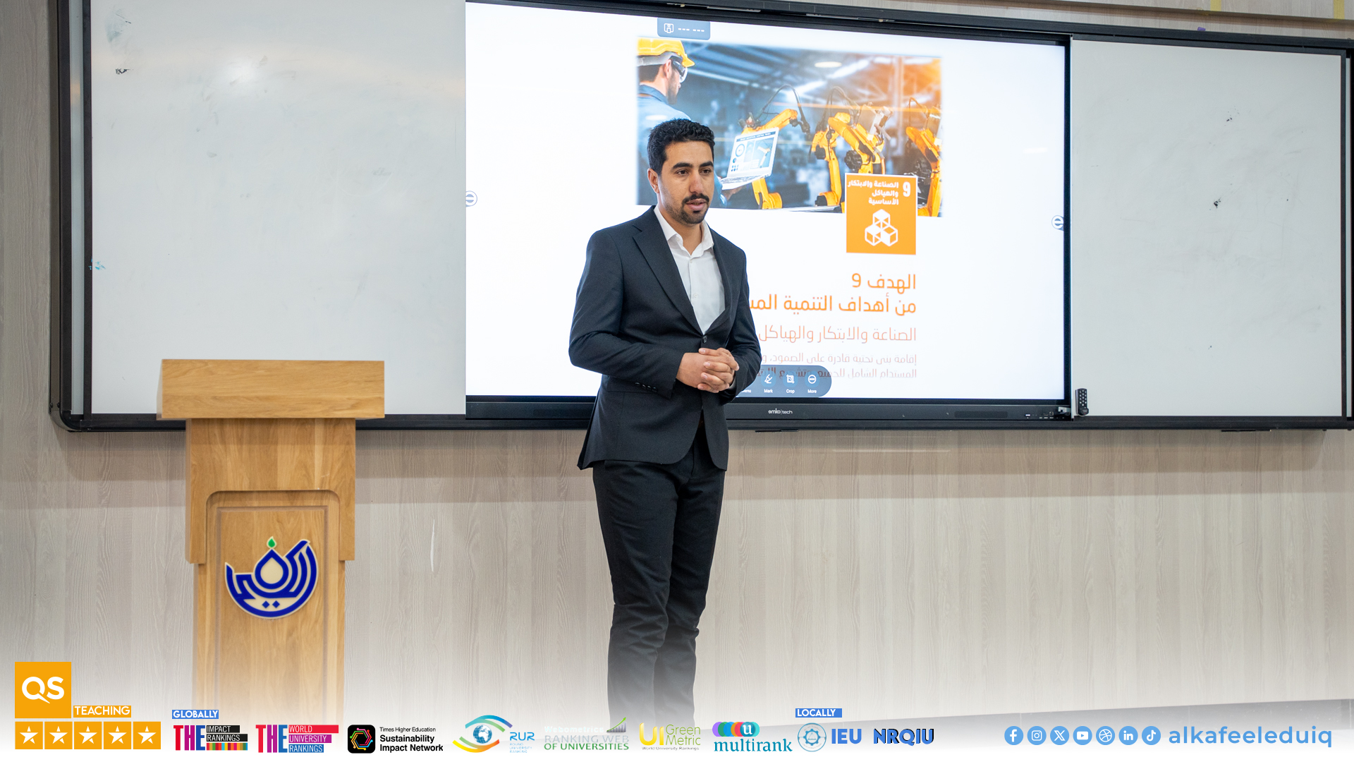 وتناولت المحاضرة الهدف التاسع من أهداف التنمية المستدامة حيث تم توضيح أهمية الاستدامة في البنى التحتية ومدى تأثيرها في الحفاظ على البيئة والمناخ ودور الصناعات التحويلية في توفير فرص العمل وتقليل البطالة. كما تم التطرق إلى مساهمة هذا الهدف في الحد من مخاطر الاحتباس الحراري وتعزيز التنمية المستدامة.