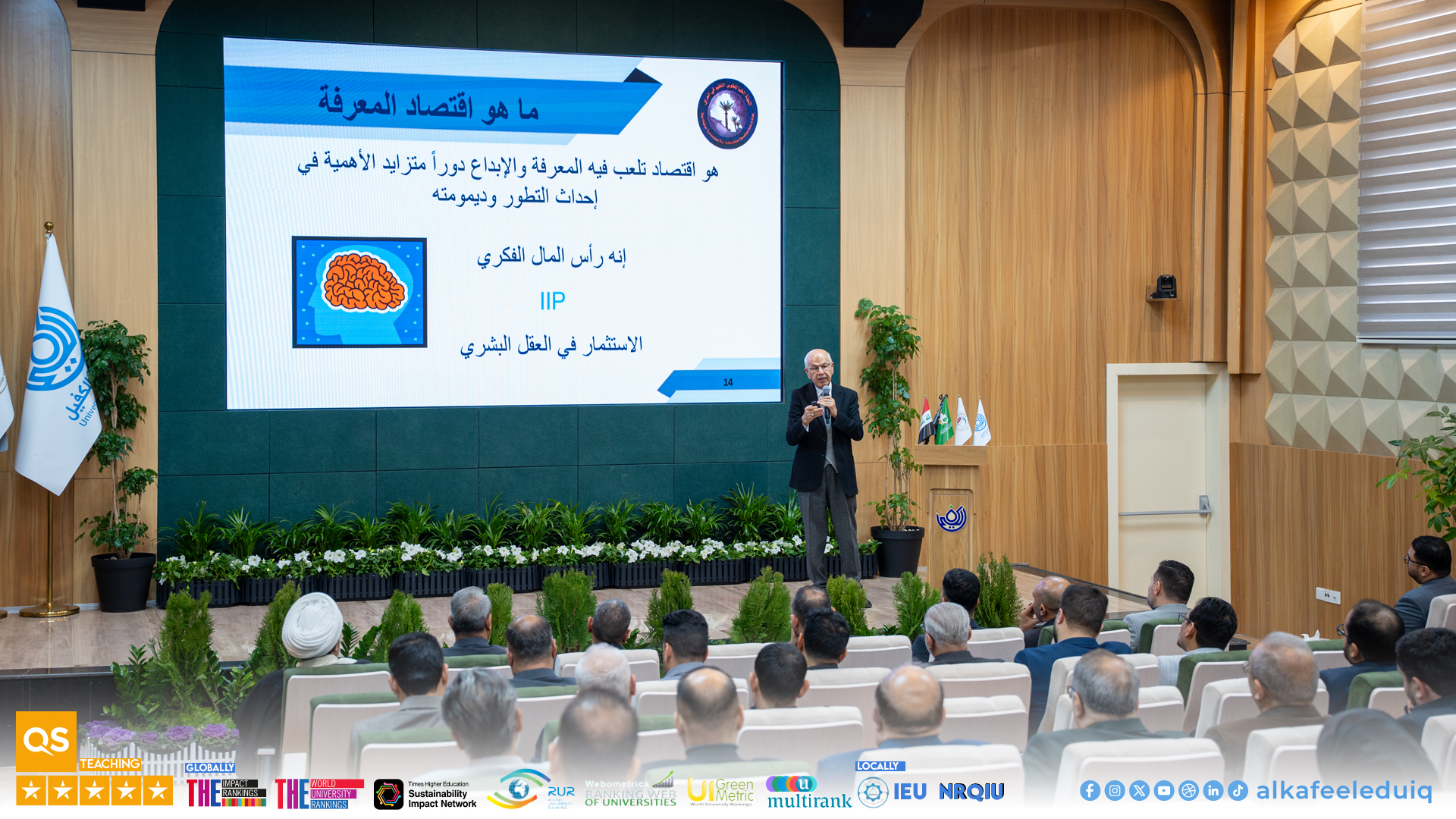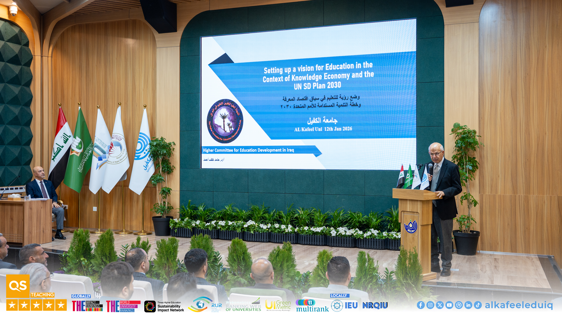 برعاية السيد رئيس جامعة الكفيل الأستاذ الدكتور نورس محمد شهيد الدهان أقامت رئاسة الجامعة / مركز التعليم المستمر محاضرة علمية بعنوان «وضع رؤية للتعليم في سياق اقتصاد المعرفة وخطة التنمية المستدامة للأمم المتحدة 2030» ألقاها الأستاذ الدكتور حامد خلف أحمد مستشار رئيس الوزراء والمدير التنفيذي للجنة العليا لتطوير التعليم في العراق يوم الاثنين الموافق 2026/1/19.