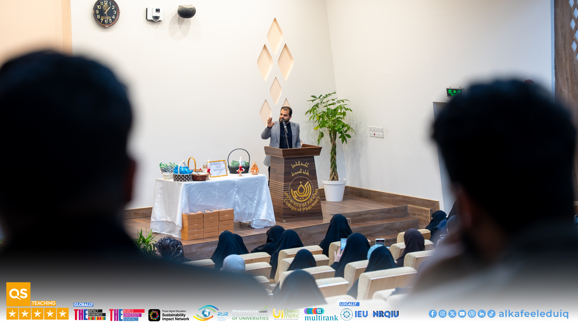 أقام قسم الإرشاد النفسي والتوجيه التربوي بالتعاون مع كلية الصيدلة في جامعة الكفيل حفل ابتهاج بمناسبة ولادات الأئمة المعصومين (عليهم السلام) في الثالث والرابع والخامس من شهر شعبان المبارك لطلبة المرحلة الأولى في الكلية وذلك يوم الأحد الموافق 2026/1/25.