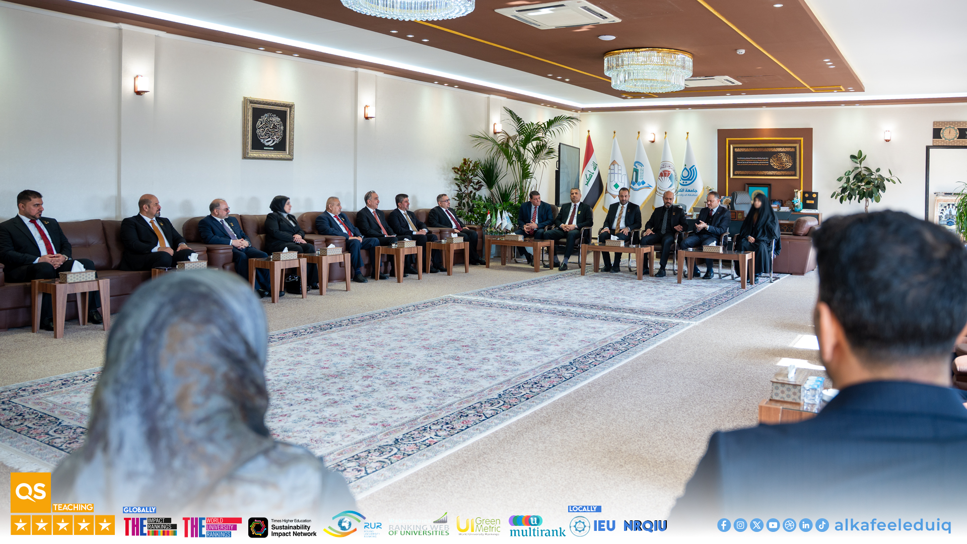 استقبل الأستاذ الدكتور نورس محمد شهيد الدهان رئيس جامعة الكفيل والأستاذ الدكتور نوال عائد الميالي مساعد رئيس الجامعة للشؤون العلمية إلى جانب أعضاء مجلس جامعة الكفيل وفدًا رسميًا من جامعة العين العراقية برئاسة الأستاذ الدكتور حيدر عبد الأمير الخفاجي رئيس جامعة العين العراقية وضم الوفد أعضاء مجلس الجامعة وذلك يوم الثلاثاء الموافق 2026/1/27 لبحث آفاق التعاون المشترك بين الجامعتين.