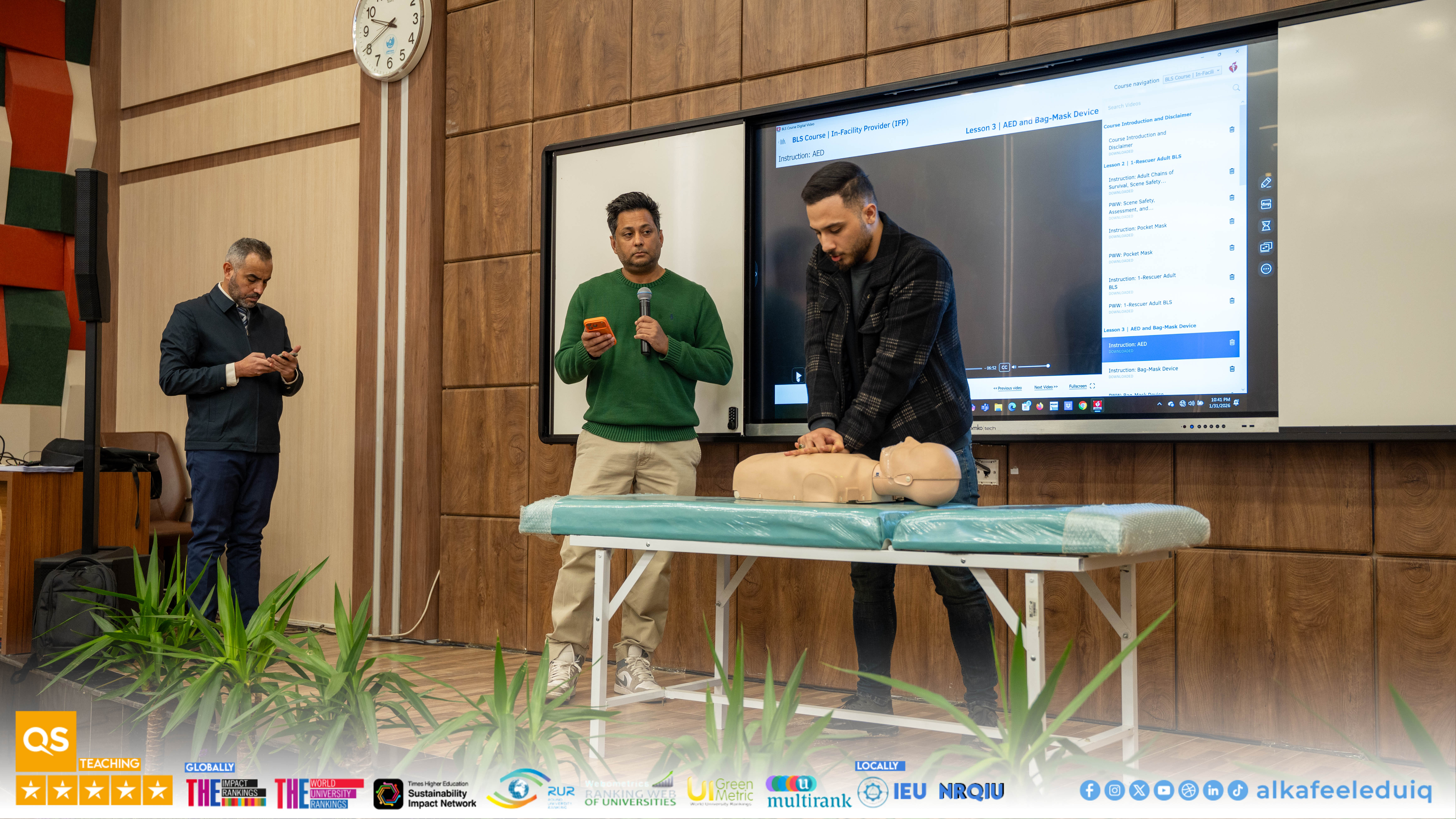 برعاية السيد رئيس جامعة الكفيل الأستاذ الدكتور نورس محمد شهيد الدهان وبالتعاون مع منظمة القلب الأمريكية (AHA) أقامت كلية الطب في جامعة الكفيل دورة تدريبية تخصصية في الإنعاش القلبي الرئوي الأساسي والمتقدم والتي تضمنت برنامجي Basic Life Support (BLS) و Advanced Cardiac Life Support (ACLS) وذلك يومي الأحد والاثنين الموافقين 1–2 / 2 / 2026.