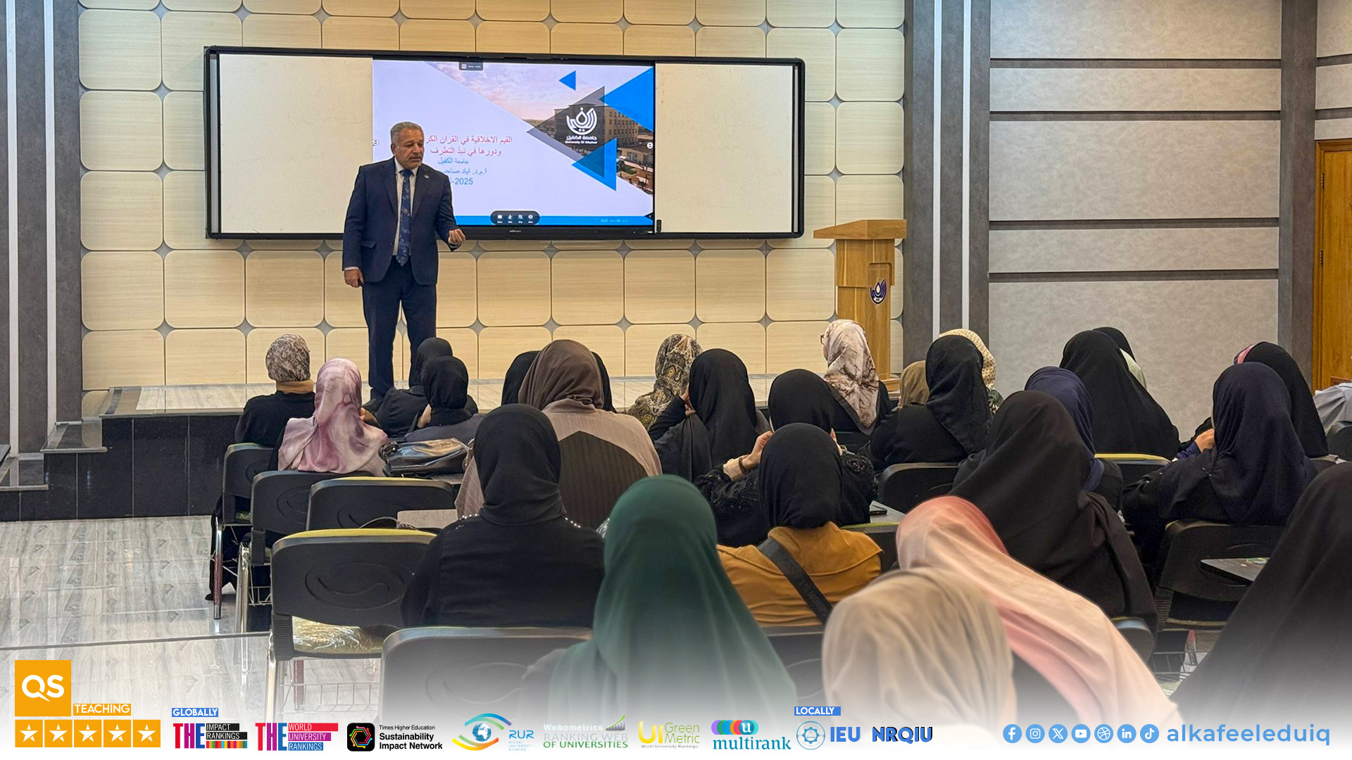 نظّم مركز التعليم المستمر في جامعة الكفيل يوم الأربعاء الموافق 2026/2/11 ورشة عمل بعنوان "القيم الأخلاقية في القرآن الكريم ودورها في نبذ التطرف" ألقاها الاستاذ المساعد الدكتور إياد صاحب حمادي معاون مدير قسم الإرشاد النفسي والتوجيه التربوي.