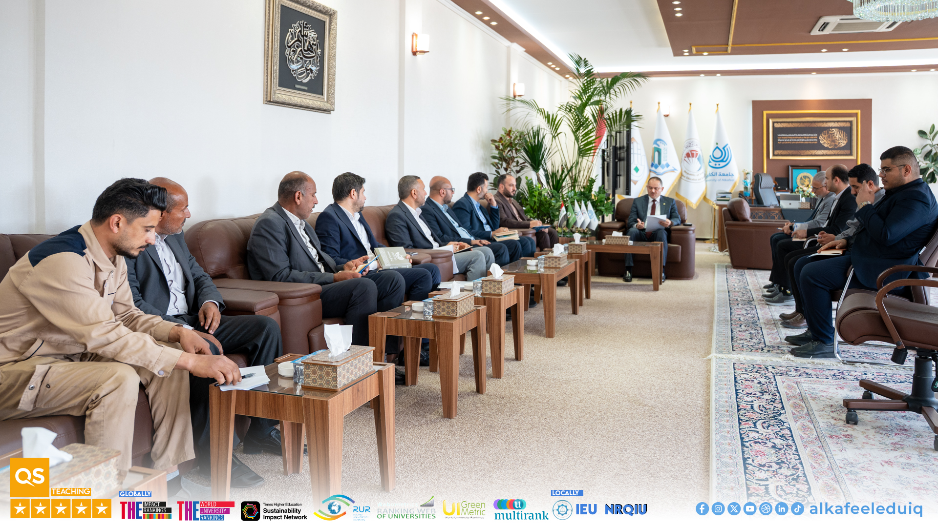 عقدَ رئيسُ جامعة الكفيل نورس محمد شهيد الدهان اجتماعًا إداريًا موسّعًا مع منتسبي الجامعة ومسؤولي الأقسام الإدارية في رئاسة الجامعة يوم السبت الموافق 2026/2/14 وذلك في إطار حرص رئاسة الجامعة على تطوير العمل المؤسسي وتعزيز كفاءة الأداء الإداري.