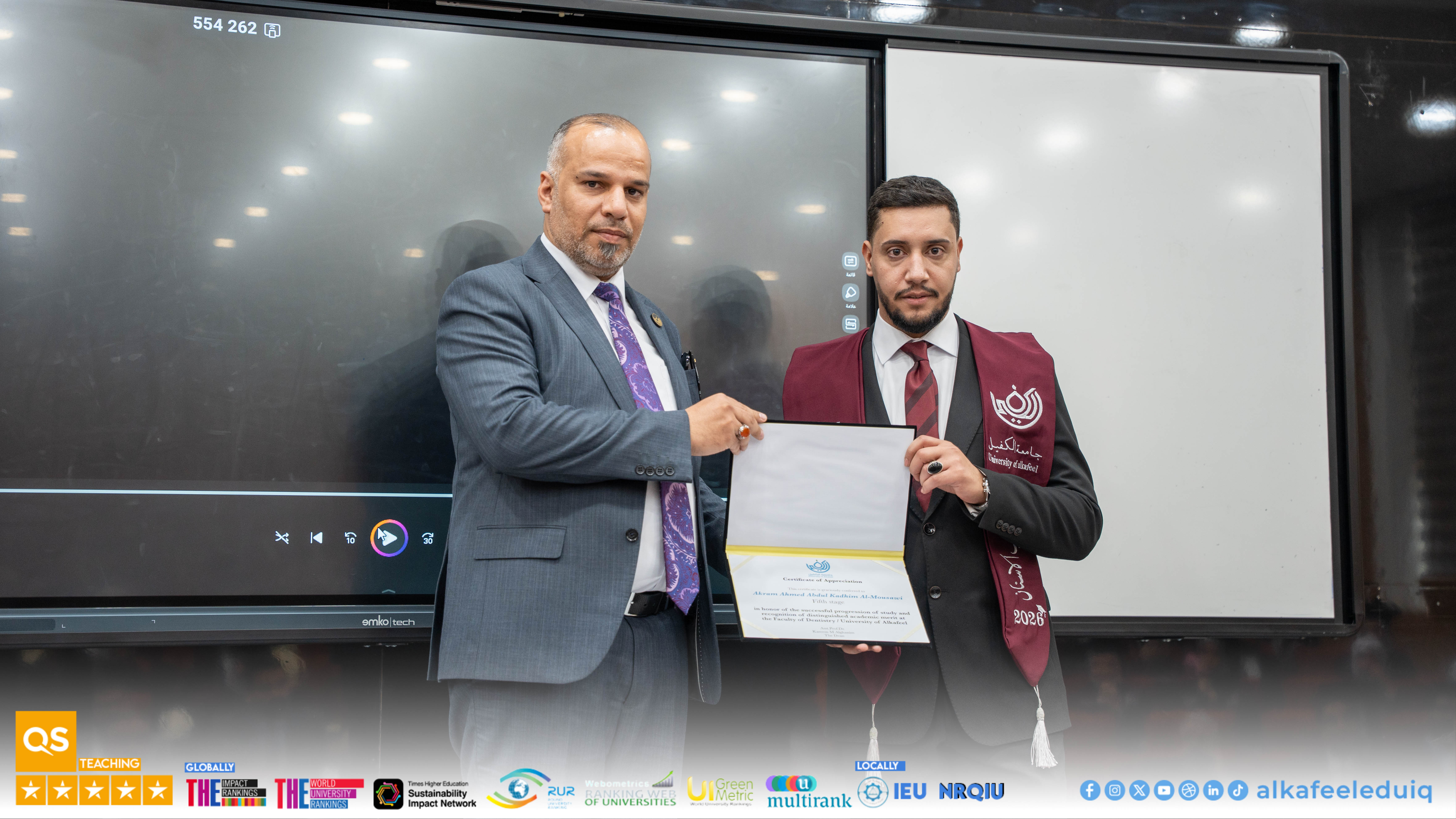 وشدد على أن هذا النجاح جاء نتيجة التعاون البنّاء بين جميع الكوادر العلمية والإدارية داعيًا الخريجين لمواصلة مسيرتهم العلمية والمهنية بروح المسؤولية والإخلاص بما يسهم في خدمة المجتمع والوطن ومؤكدًا أن جامعة الكفيل ستواصل دعمها للطلبة وكلياتها لتحقيق مزيد من الإنجازات والتميز الأكاديمي.