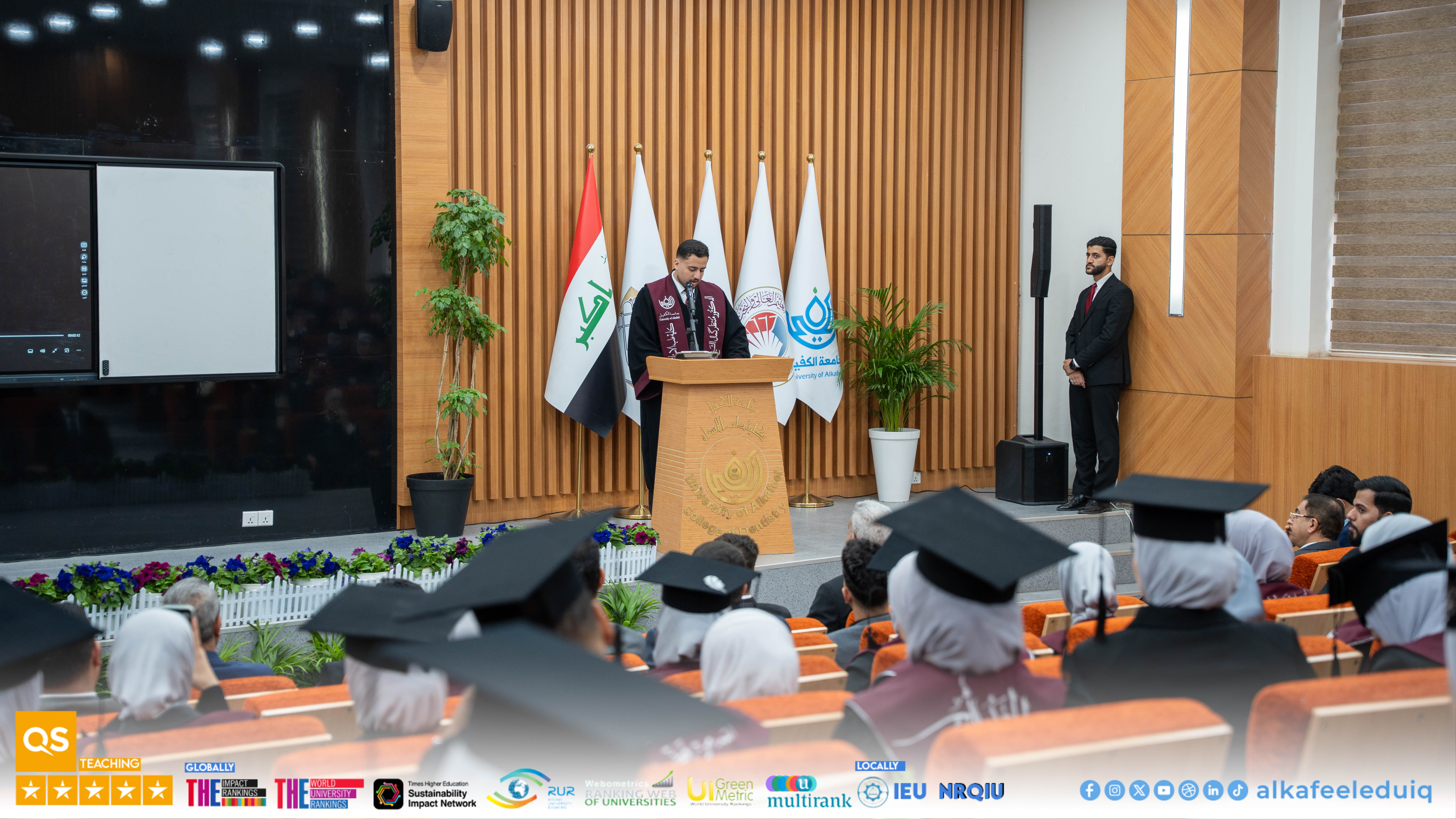 وفي كلمته خلال الحفل رحّب رئيس الجامعة بالعوائل الكريمة مشيدًا بالجهود الكبيرة التي بذلها الكادر الأكاديمي والإداري في إعداد هذه الكوكبة المتميزة من الخريجين وموضحًا أن هذا اليوم يمثل مناسبة فخر واعتزاز للجامعة وللطلبة على حد سواء.