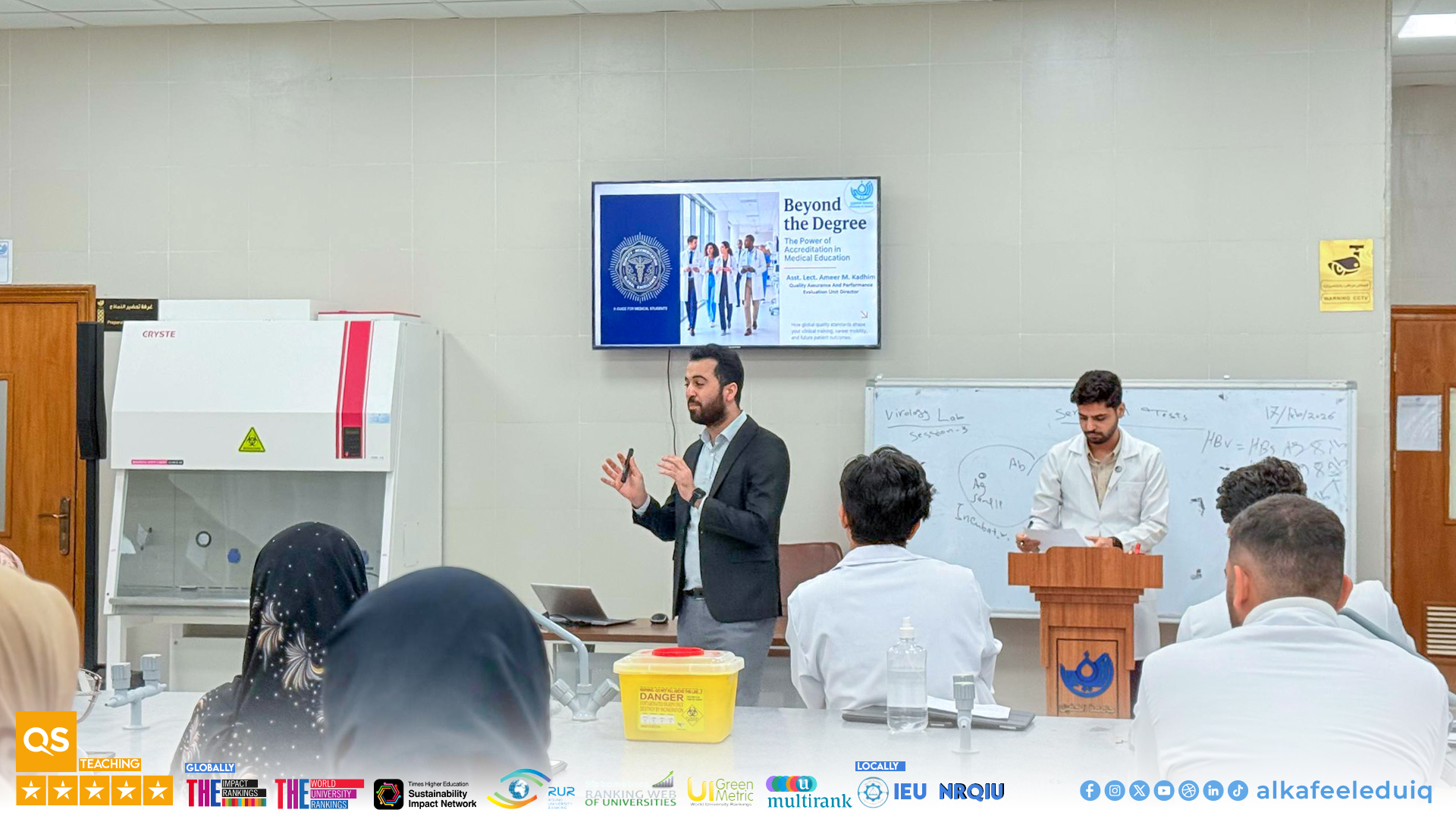 نظّمت كلية الطب في جامعة الكفيل ممثلةً بوحدة ضمان الجودة وتقييم الأداء محاضرة بعنوان “The Power of Accreditation” لطلبة المرحلة الثالثة يوم الثلاثاء الموافق 2026/2/17 ضمن جهودها لتعزيز ثقافة الجودة والاعتماد الأكاديمي.