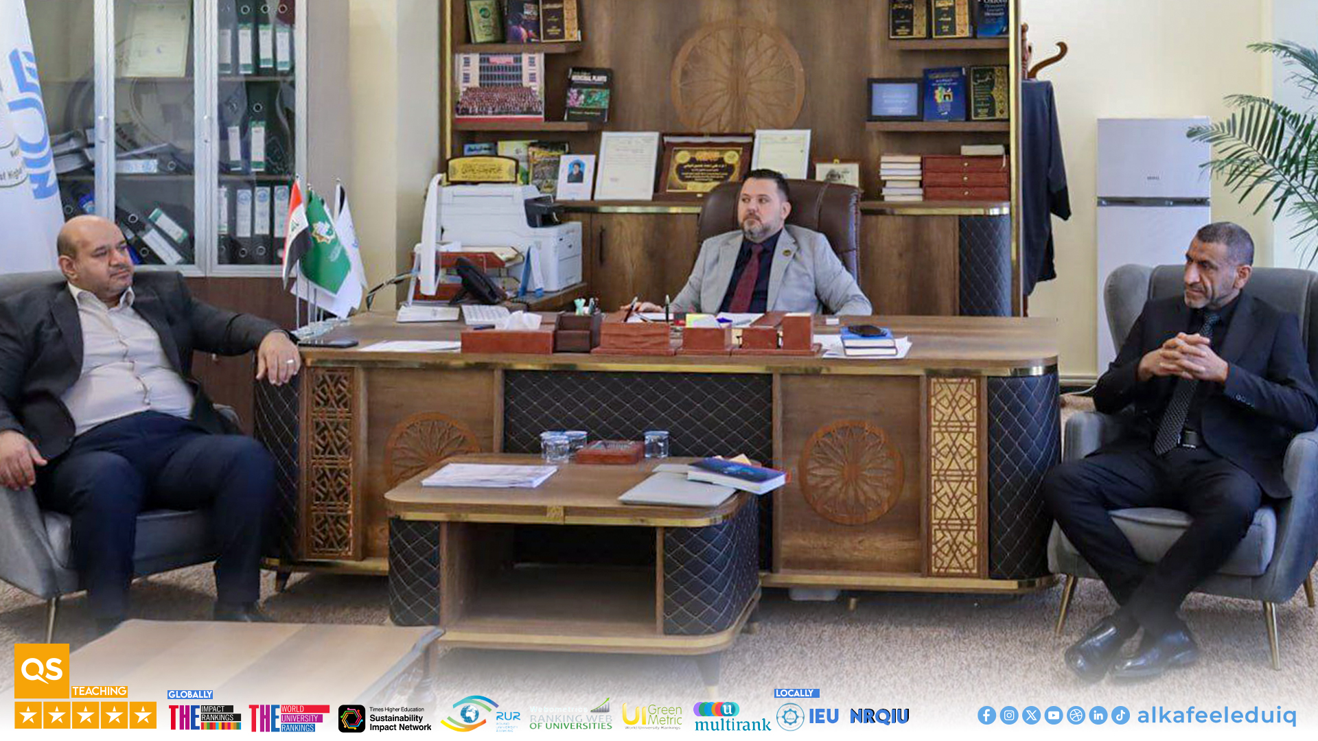 عقد عميد كلية الصيدلة في جامعة الكفيل الأستاذ المساعد الدكتور سعد مشكور وليد الزيادي اجتماعًا مع طلبة المرحلة الخامسة وبحضور المعاونين: المعاون الإداري الأستاذ المساعد الدكتور علي أحمد حسين الميالي والمعاون العلمي الأستاذ الدكتور حسنين شاكر محمود يوم الثلاثاء الموافق 2026/2/24.