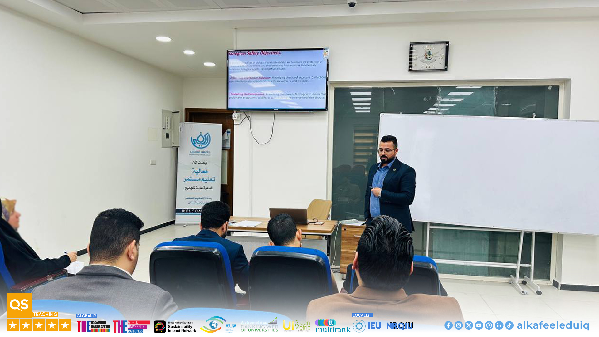 أقامت كلية طب الأسنان في جامعة الكفيل محاضرة علمية بعنوان "السلامة والأمن البايولوجي في مختبرات طب الأسنان" يوم الثلاثاء الموافق 2026/2/24 ألقاها المدرس المساعد يوسف صاحب فاخر.