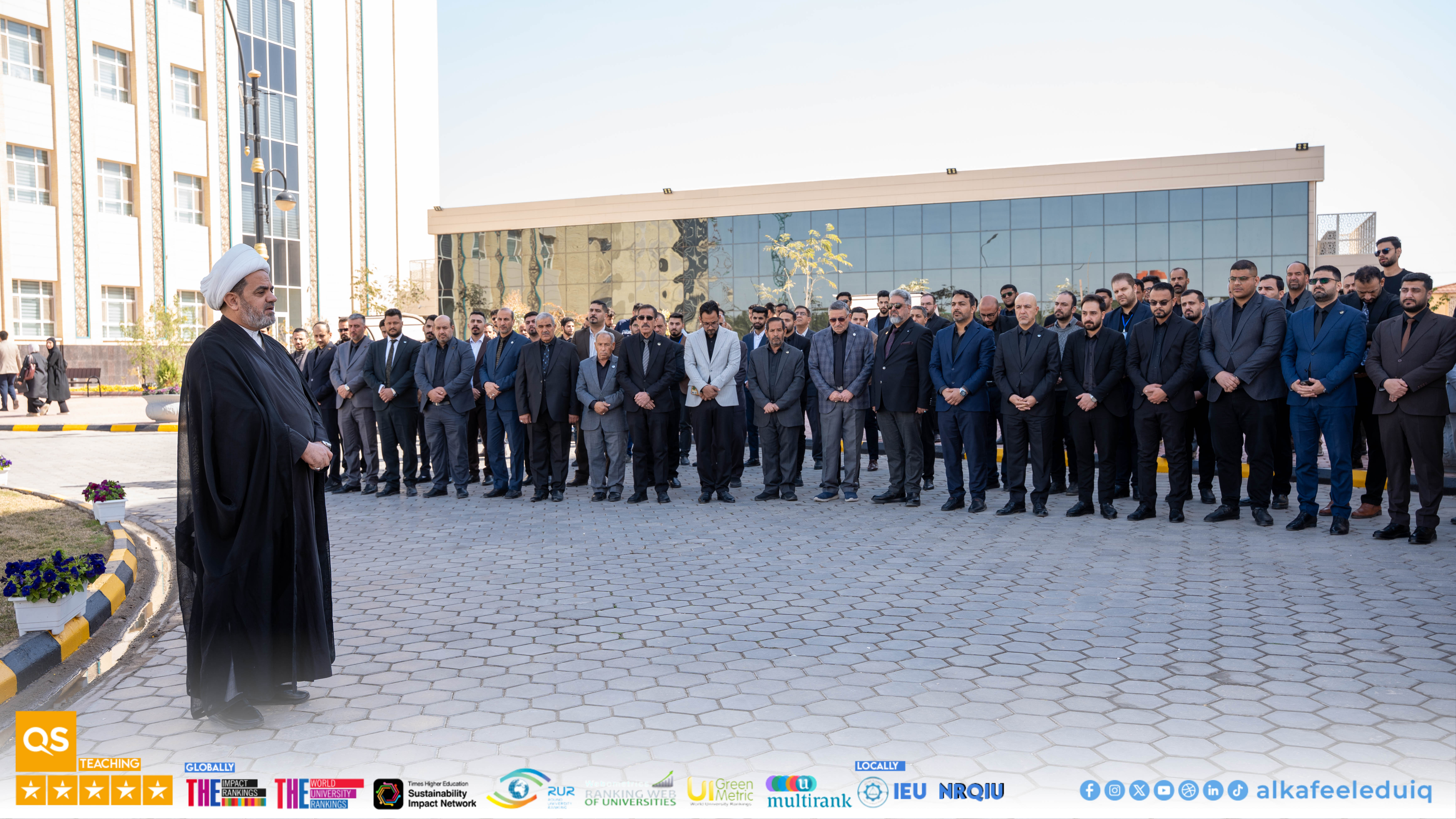 أقامت جامعة الكفيل وقفة حداد لروح سماحة آية الله السيد الشهيد علي الخامنئي (قدّس سرّه) بحضور رئيس الجامعة الأستاذ الدكتور نورس محمد شهيد الدهان والأستاذ الدكتور نوال عائد الميالي مساعد رئيس الجامعة للشؤون العلمية إلى جانب عمداء الكليات والمعاونين والتدريسيين ومنتسبي الجامعة وطلبتها.