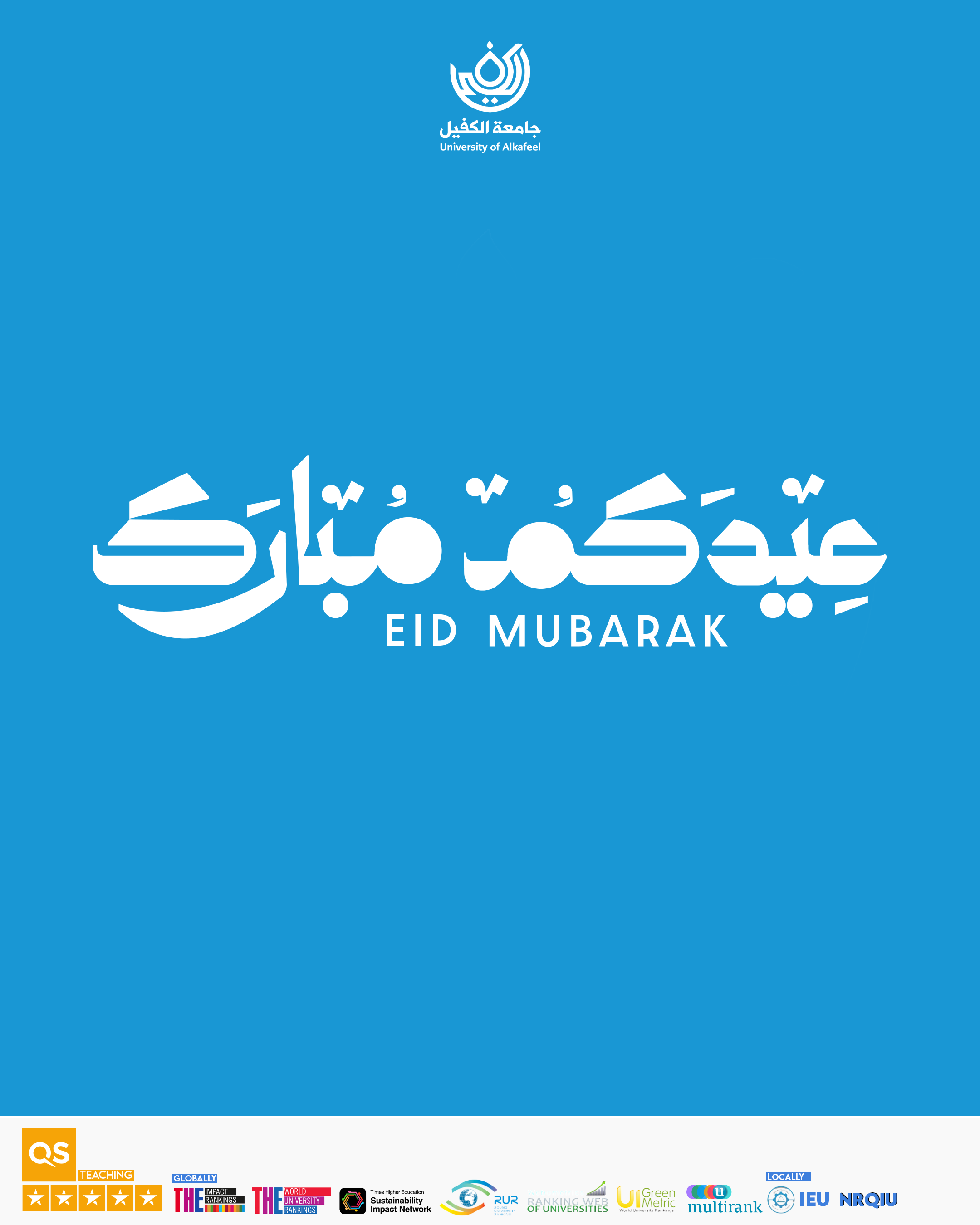 تتقدّم جامعة الكفيل برئاسة الأستاذ الدكتور نورس محمد شهيد الدهان بأحرّ التهاني وأطيب التبريكات إلى الأمة الإسلامية والمراجع العظام وإلى مولانا صاحب العصر والزمان الإمام المهدي (عجّل الله تعالى فرجه الشريف) بمناسبة حلول عيد الفطر المبارك.