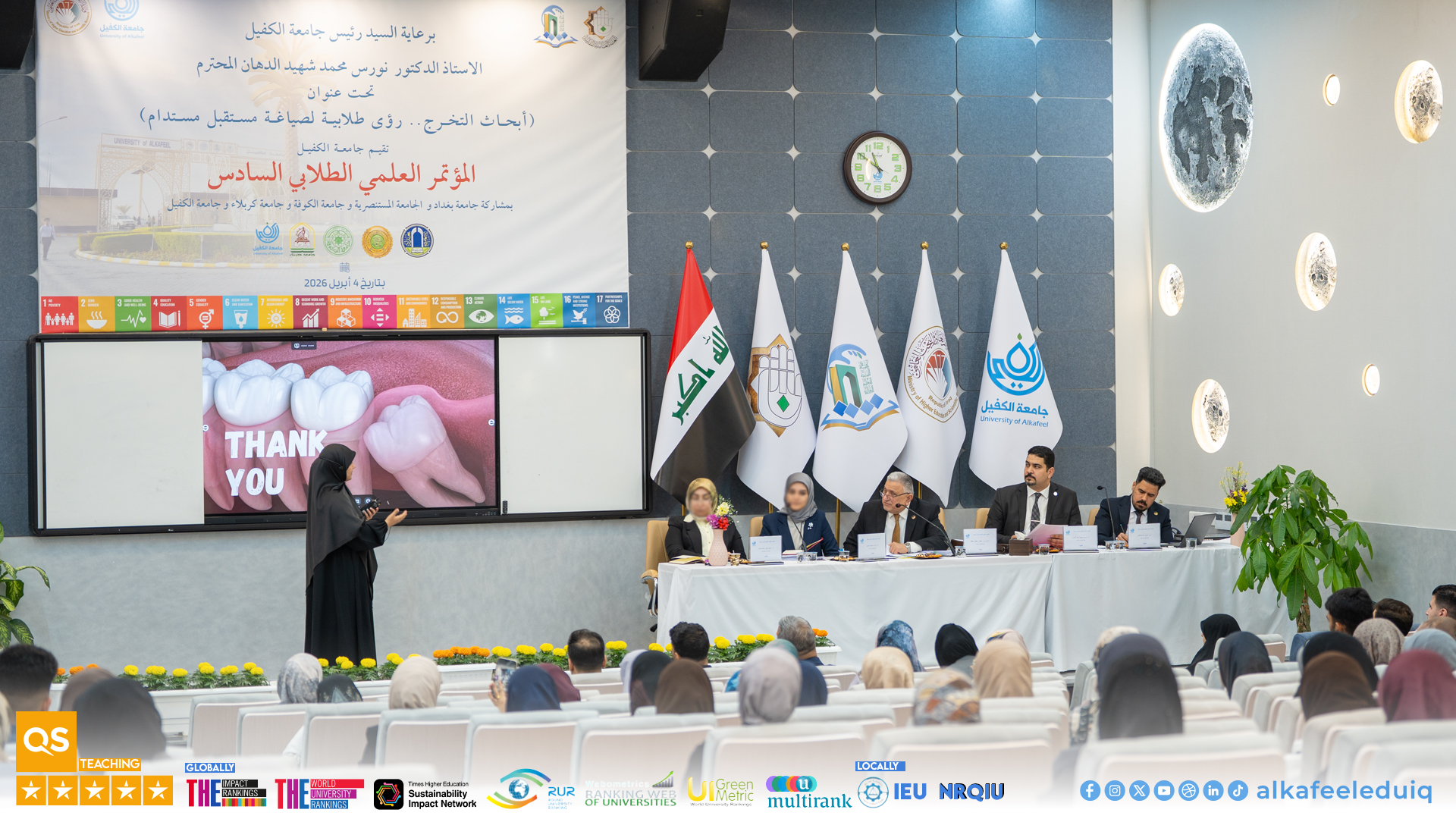 أقامت جامعة الكفيل جلسات مناقشة بحوث التخرج لطلبة كلية طب الأسنان ضمن فعاليات المؤتمر العلمي الطلابي السادس الذي تنظمه الجامعة تحت شعار (أبحاث التخرج .. رؤى طلابية لصياغة مستقبل مستدام) بمشاركة طلبة من جامعة الكفيل وجامعة الكوفة وذلك يوم السبت الموافق 2026/4/4.