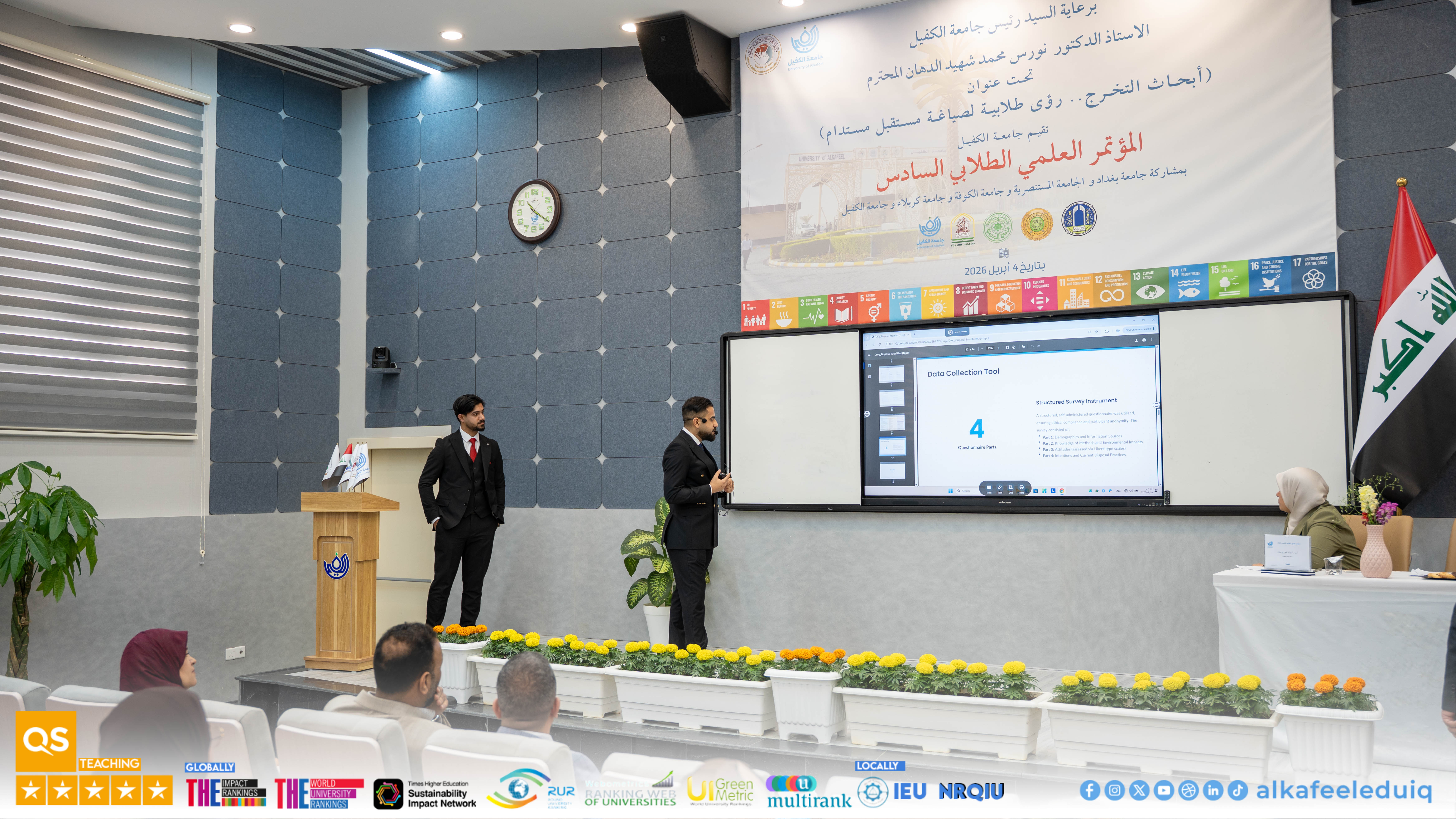 شهدت جامعة الكفيل فعاليات اليوم الثاني للمؤتمر العلمي الطلابي السادس مناقشة بحوث تخرج طلبة كلية الصيدلة بمشاركة نخبة من الجامعات العراقية وذلك ضمن فعاليات أسبوع الاستدامة الجامعي الثاني يوم الأحد الموافق 2026/4/5.