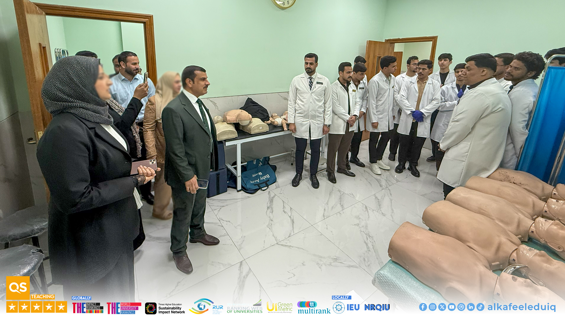 وقد كان في استقبال الوفد الأستاذ المساعد الدكتور فاطمة كريم البكّاء معاون العميد للشؤون العلمية والمدرس الدكتور محمد جعفر الأنصاري معاون العميد للشؤون الإدارية حيث قاما بجولة في الكلية لتعريف الضيوف بالبنى التحتية الرقمية والمرافق التعليمية والتقنيات الحديثة المستخدمة في التعليم الطبي.