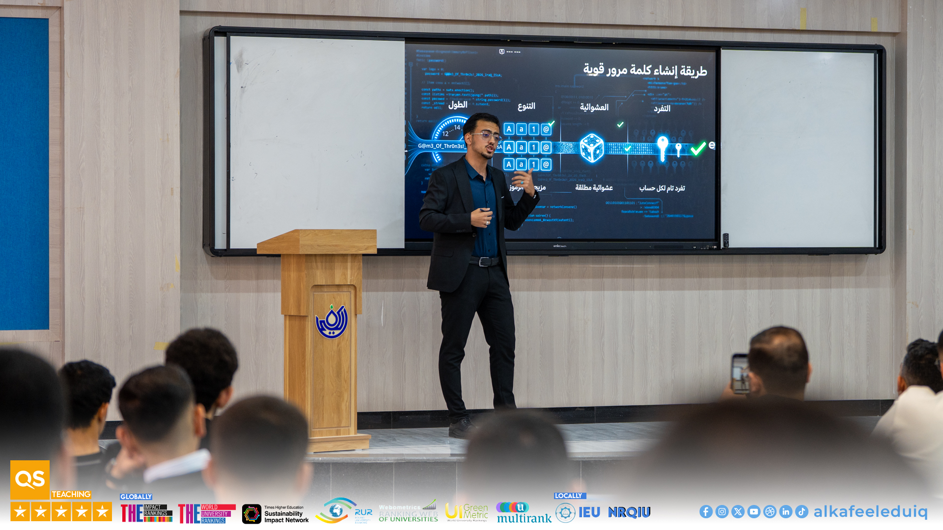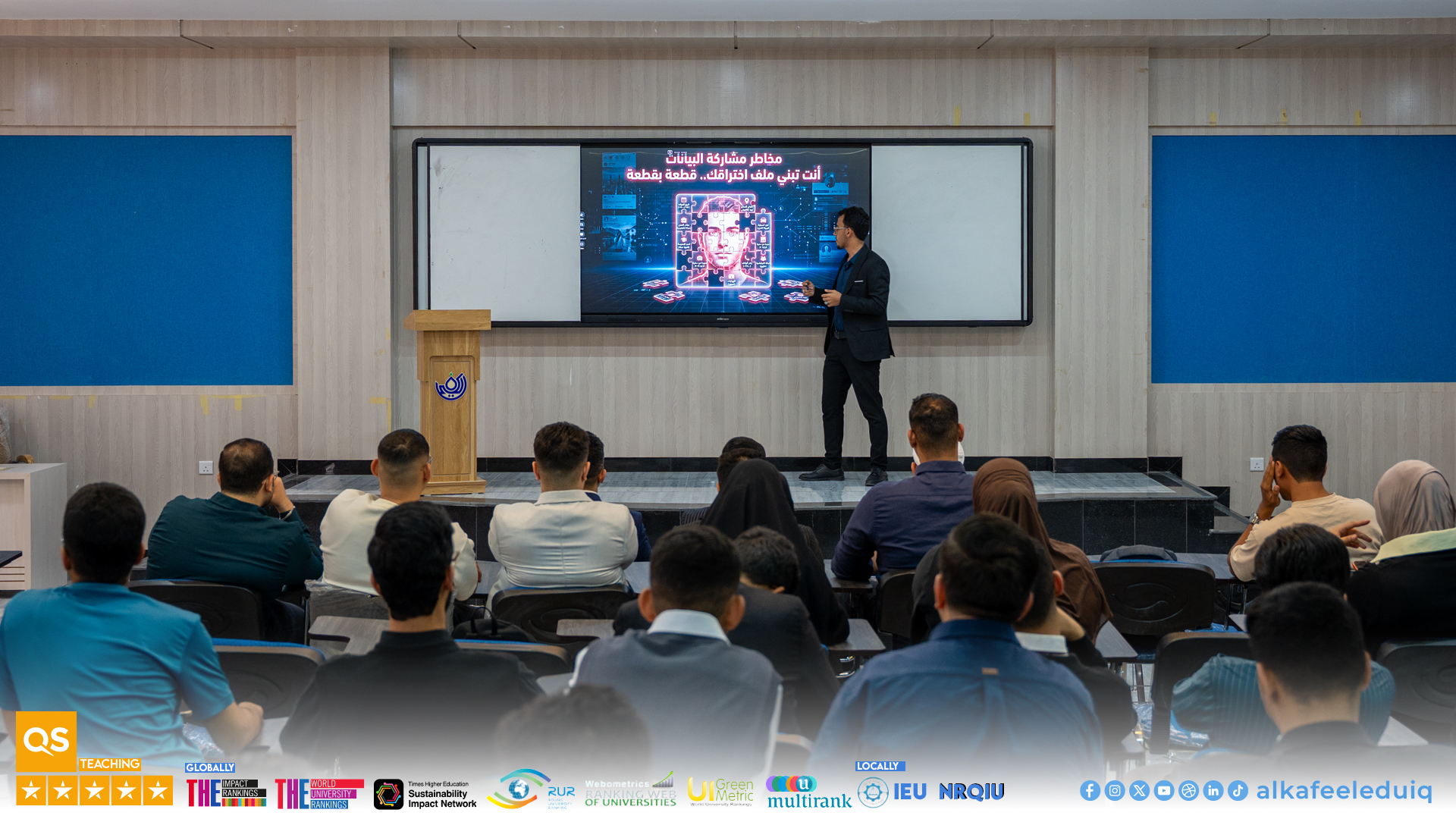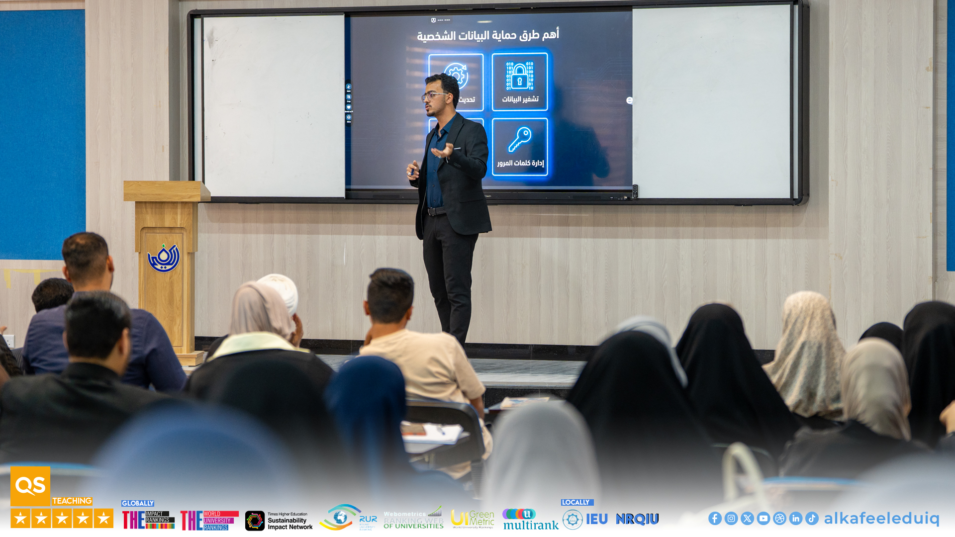 كما تخللت المحاضرة مسابقة تحفيزية حول موضوع أمن البيانات وخصوصية المعلومات أسهمت في تعزيز التفاعل مع الحاضرين وترسيخ المفاهيم الأساسية المرتبطة بأمن المعلومات لدى الطلبة.