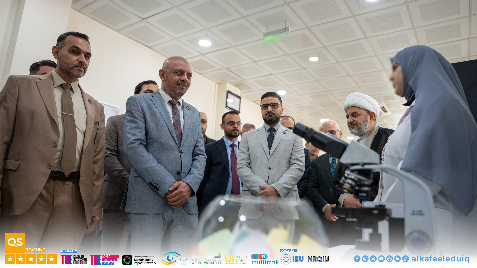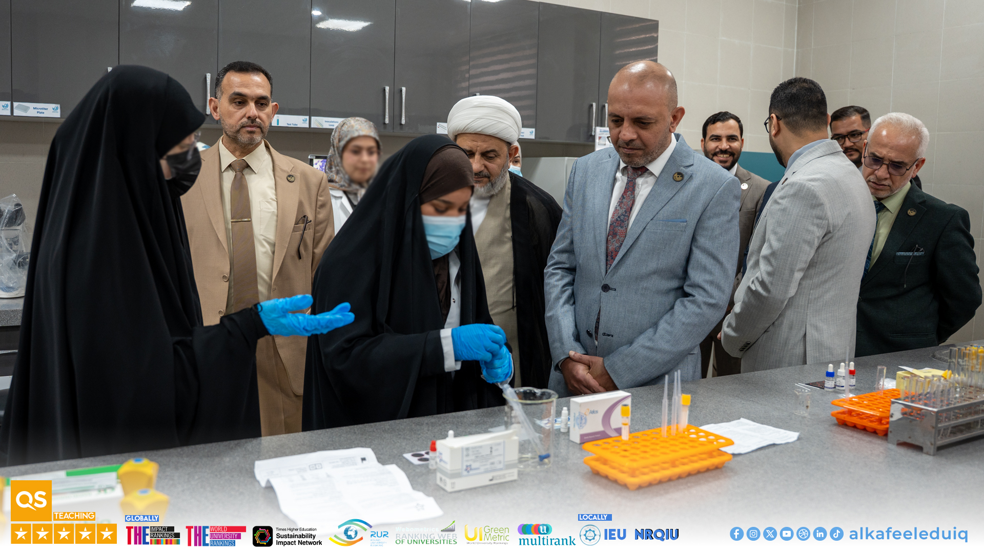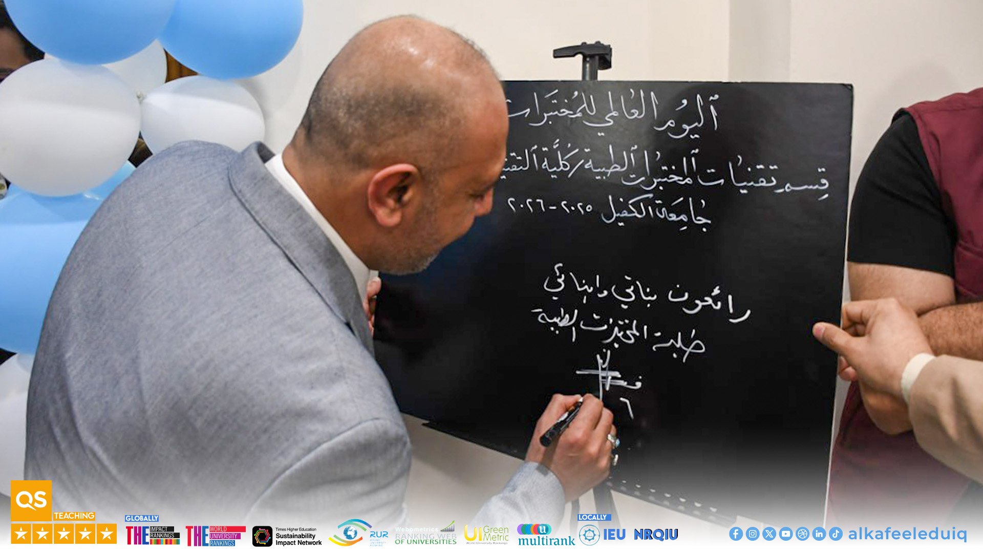 أقام قسم تقنيات المختبرات الطبية في كلية التقنيات الصحية والطبية – جامعة الكفيل يوم الاثنين الموافق 2026/4/6 احتفالاً بمناسبة اليوم العالمي للمختبرات ضمن فعاليات أسبوع الاستدامة الجامعي الثاني بهدف تعزيز مهارات الطلبة العملية والبحثية وتشجيعهم على التعرف على أحدث الأجهزة والمعدات المخبرية وفهم طرق إجراء الفحوصات العلمية بدقة وأمان.