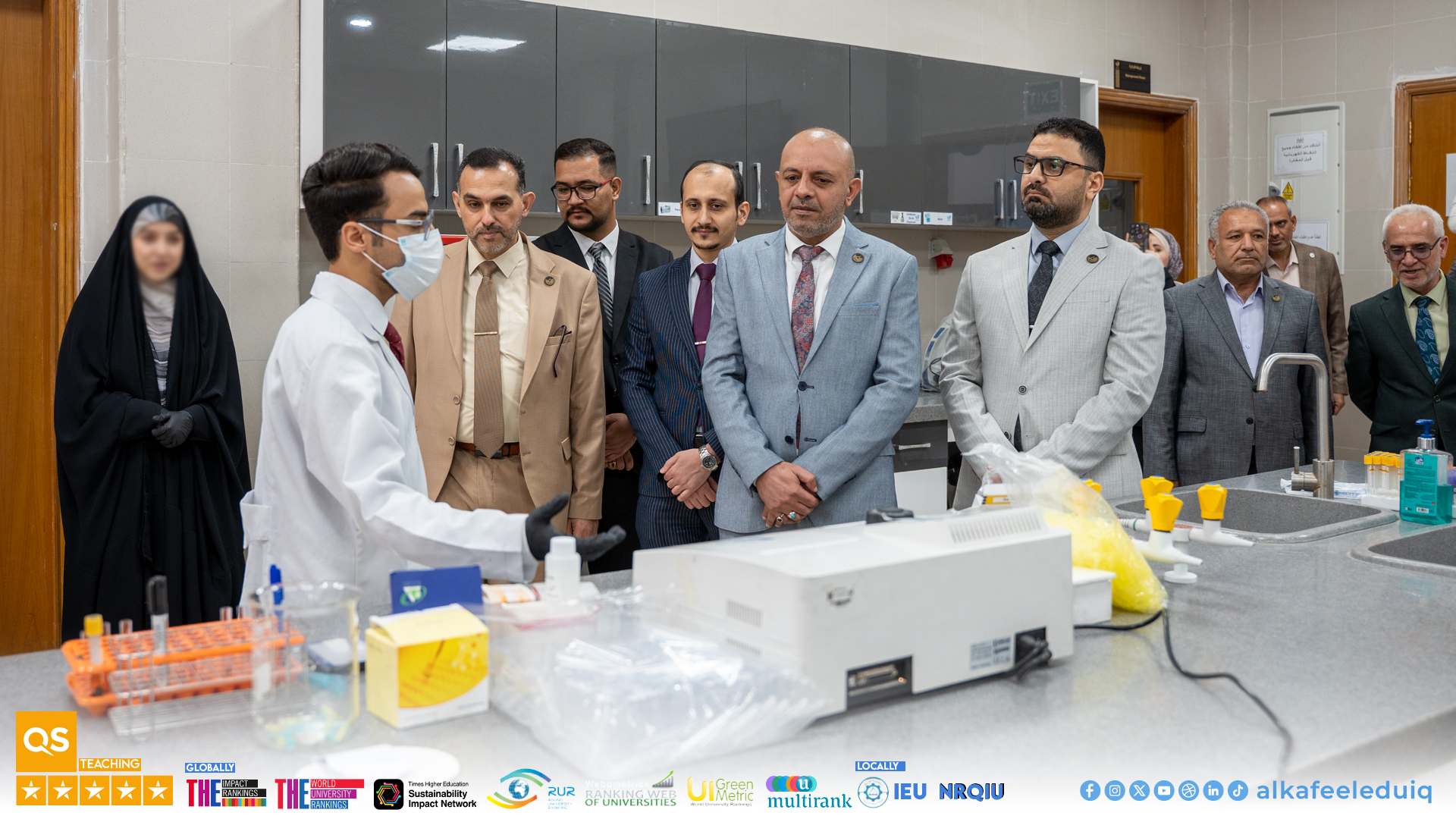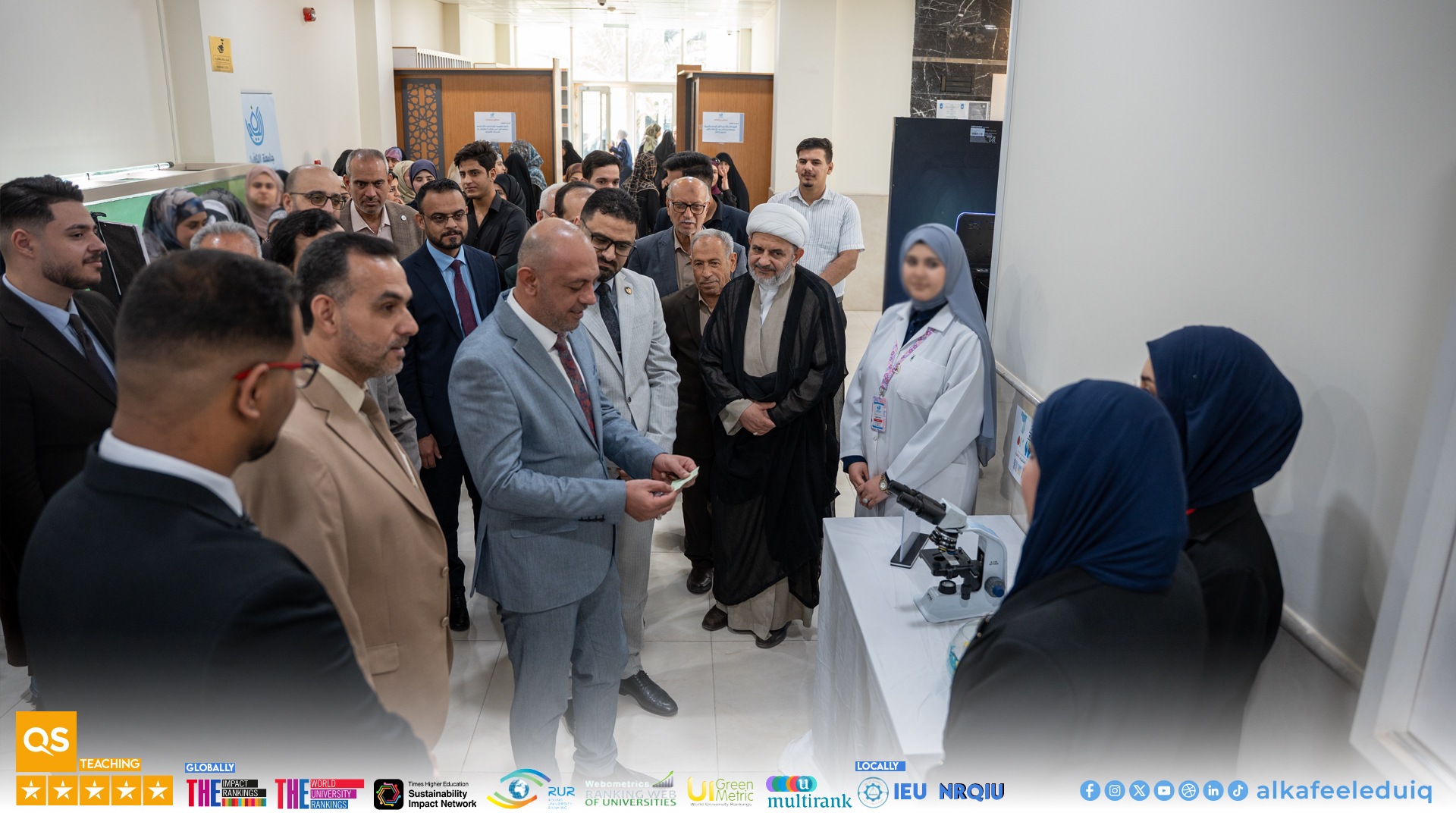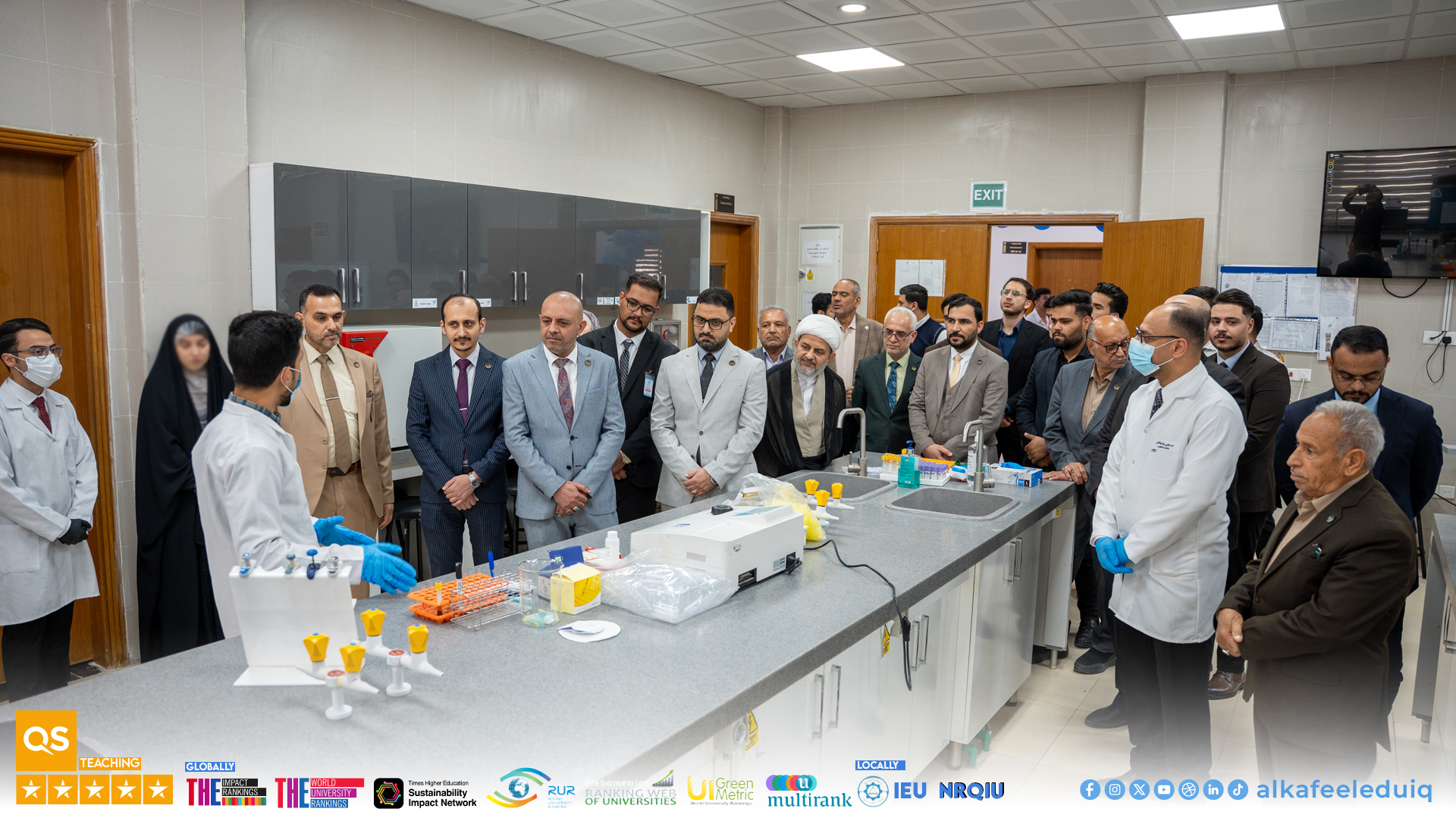 أقام قسم تقنيات المختبرات الطبية في كلية التقنيات الصحية والطبية – جامعة الكفيل يوم الاثنين الموافق 2026/4/6 احتفالاً بمناسبة اليوم العالمي للمختبرات ضمن فعاليات أسبوع الاستدامة الجامعي الثاني بهدف تعزيز مهارات الطلبة العملية والبحثية وتشجيعهم على التعرف على أحدث الأجهزة والمعدات المخبرية وفهم طرق إجراء الفحوصات العلمية بدقة وأمان.