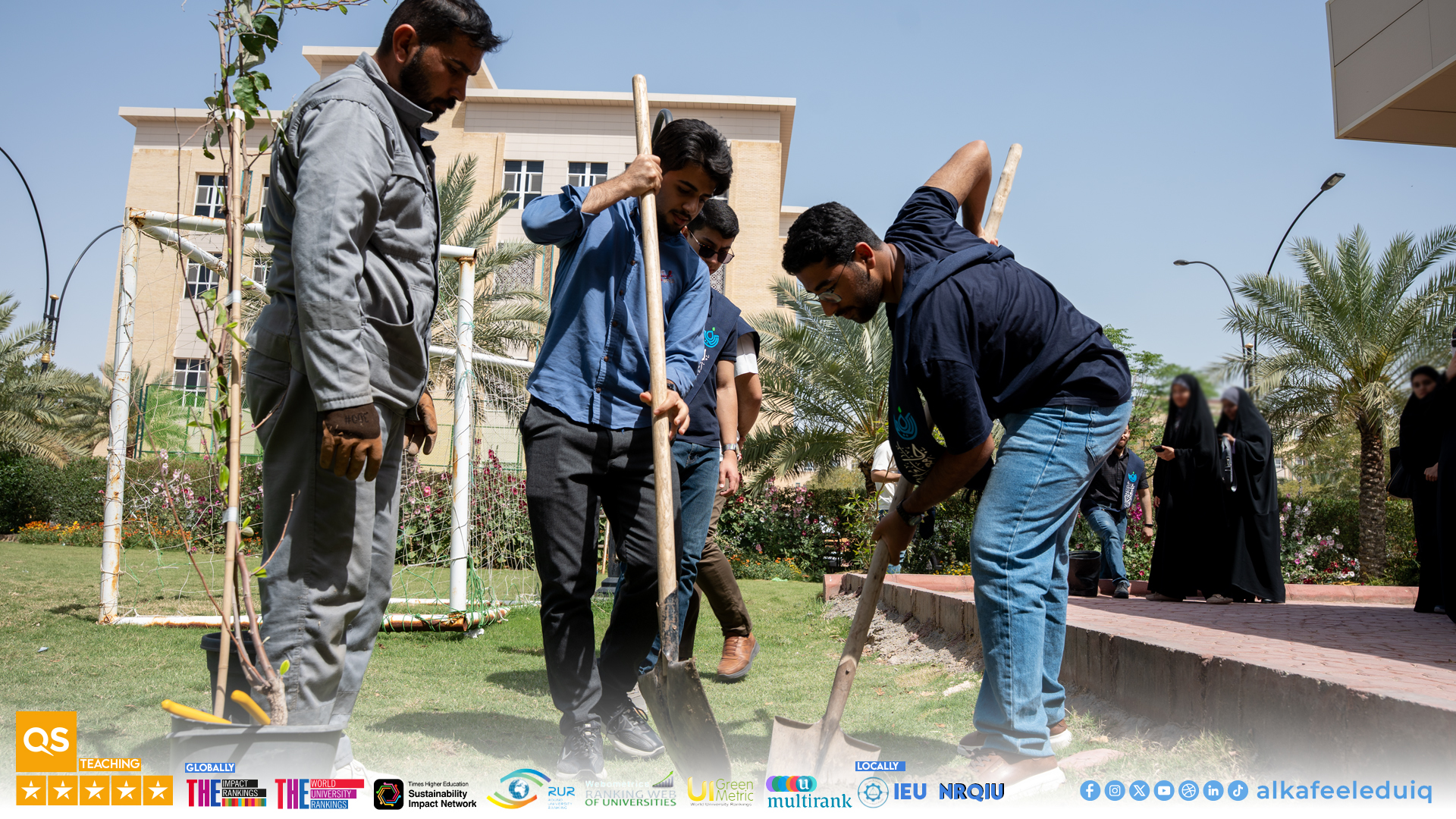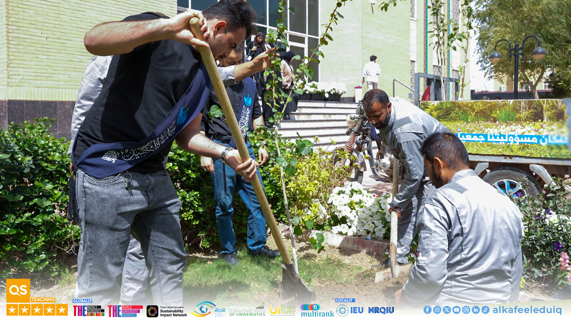 نظمت شعبة الزراعة في جامعة الكفيل حملة طلابية لزراعة النباتات والأشجار داخل ساحات الجامعة بالتعاون مع قسم الإرشاد النفسي والتوجيه التربوي وبمشاركة عدد كبير من طلبة مختلف الكليات وذلك اليوم الثلاثاء الموافق 2026/4/7.