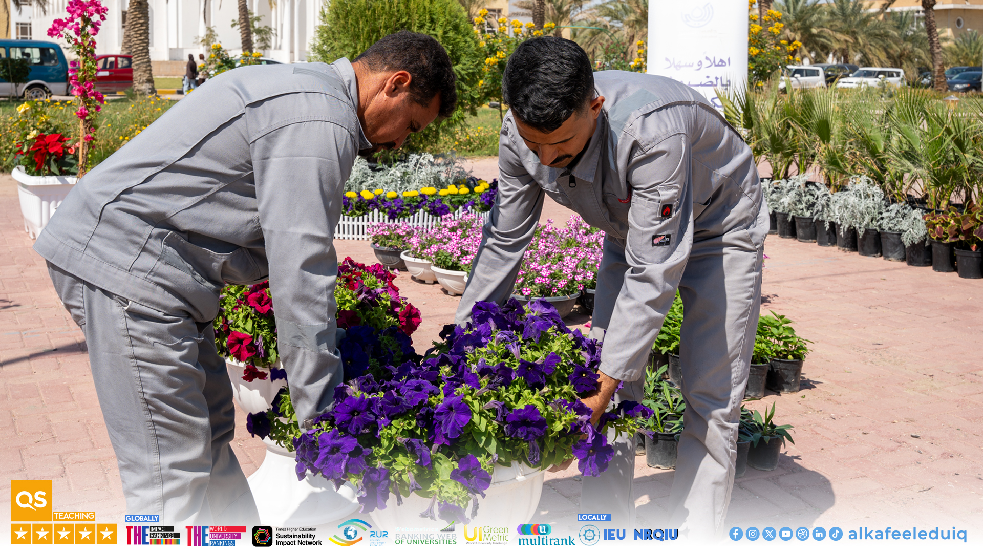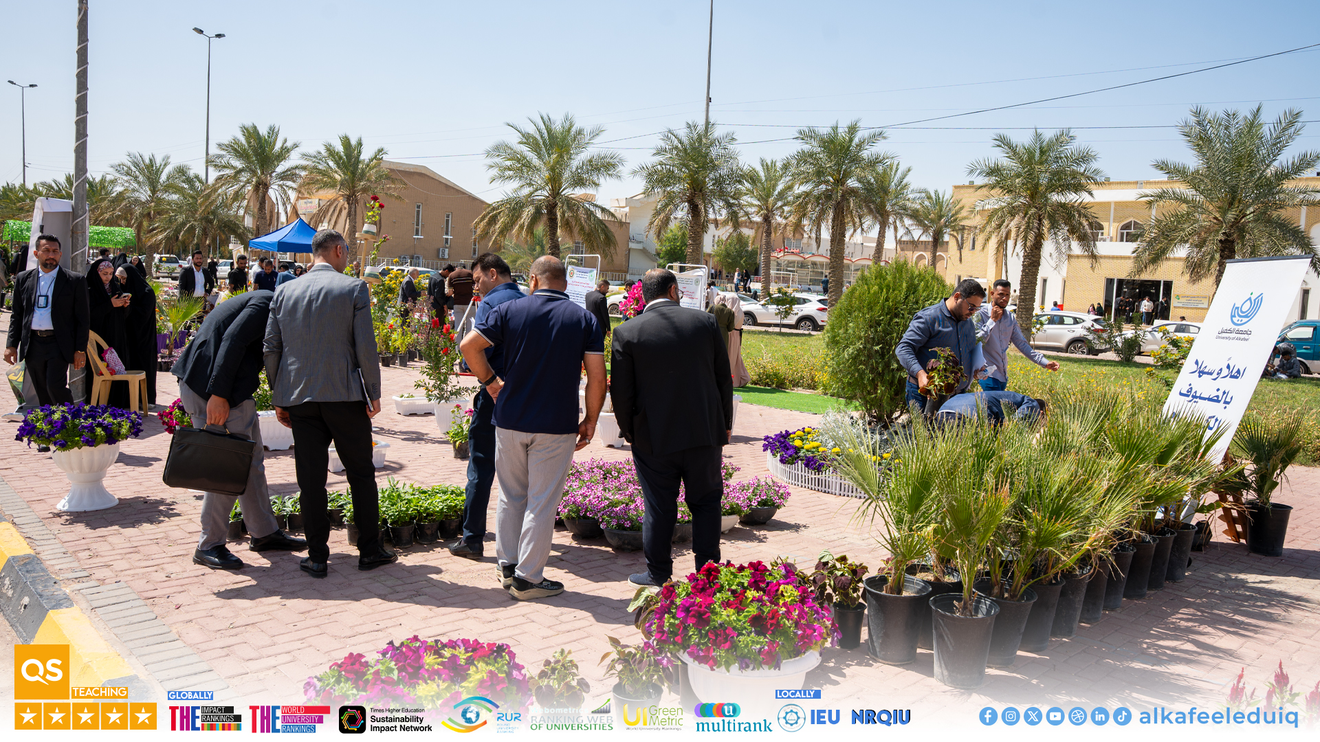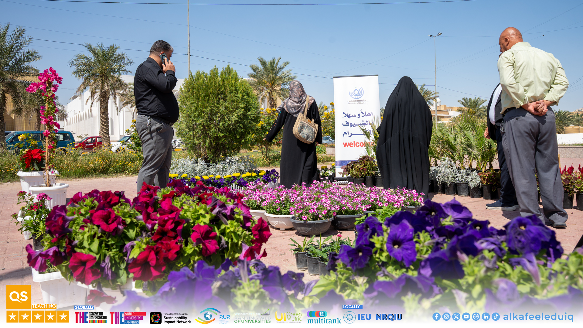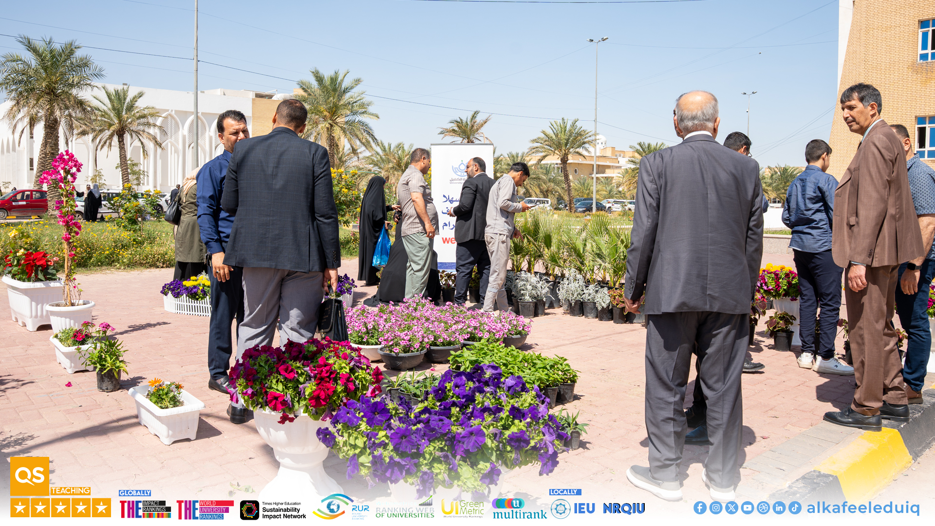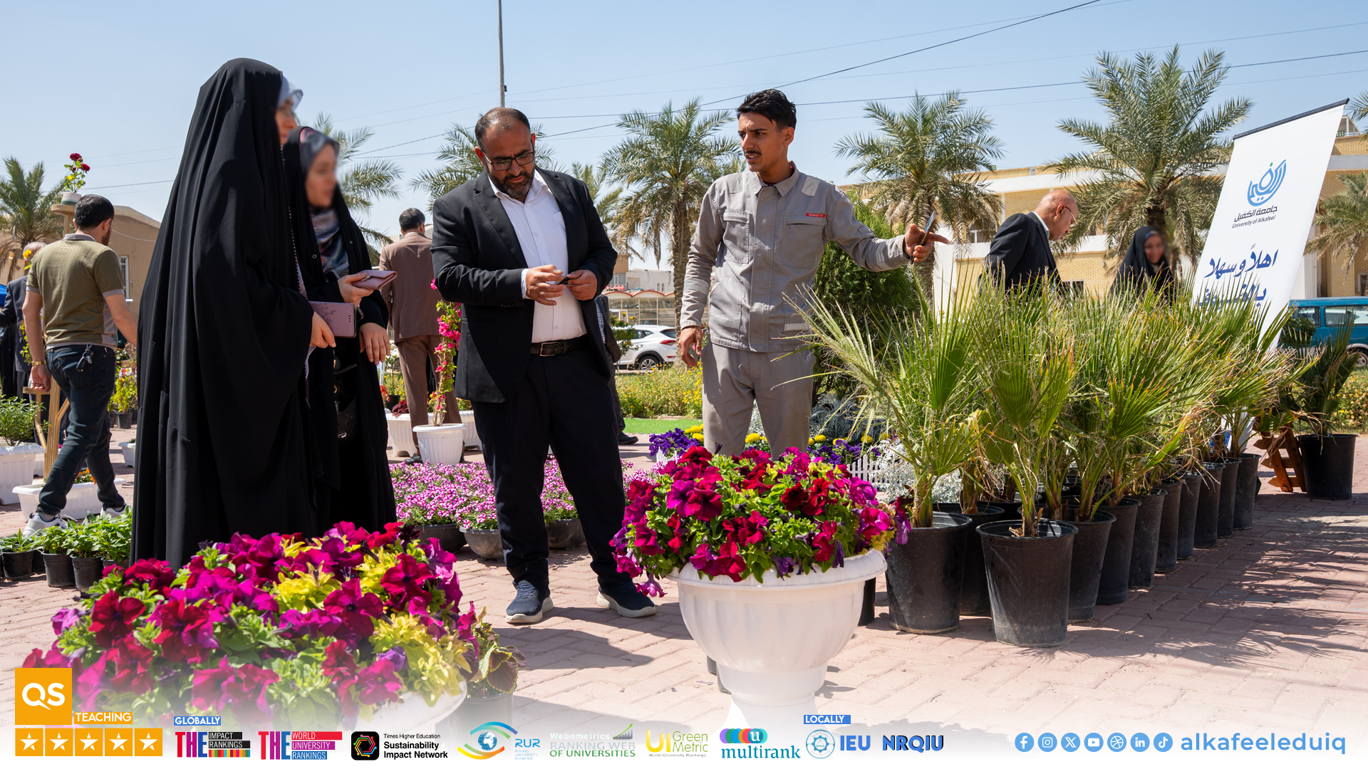 ضمن فعاليات أسبوع الاستدامة الثاني وتلبيةً للدعوة المقدّمة من جامعة الكوفة شاركت جامعة الكفيل في معرض الزهور المُقام على حدائق جامعة الكوفة بمشاركة عدد من المؤسسات الأكاديمية يوم الأربعاء الموافق 2026/4/8.